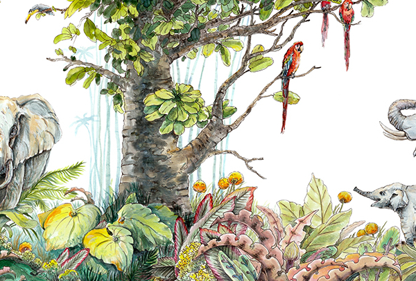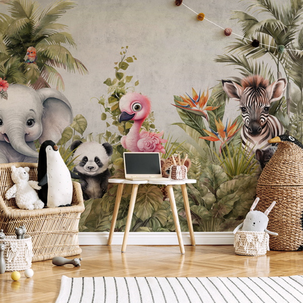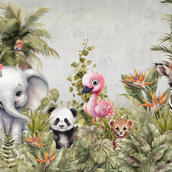 • ANIMALE, BĂIAT, FATĂ, FRUNZE TROPICALE, Pentru cameră, Pentru copii, PENTRU COPII, Picturi murale