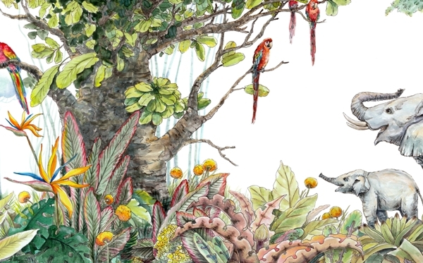 - ANIMALE, FRUNZE TROPICALE, Pentru cameră, PENTRU SUFRAGERIE, Picturi murale