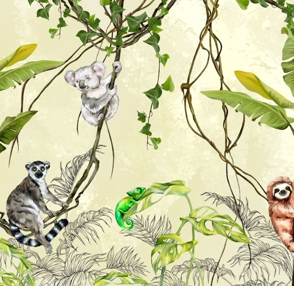 - ANIMALE, FRUNZE TROPICALE, Pentru cameră, PENTRU DORMITOR, PENTRU HOL, PENTRU SUFRAGERIE, Picturi murale