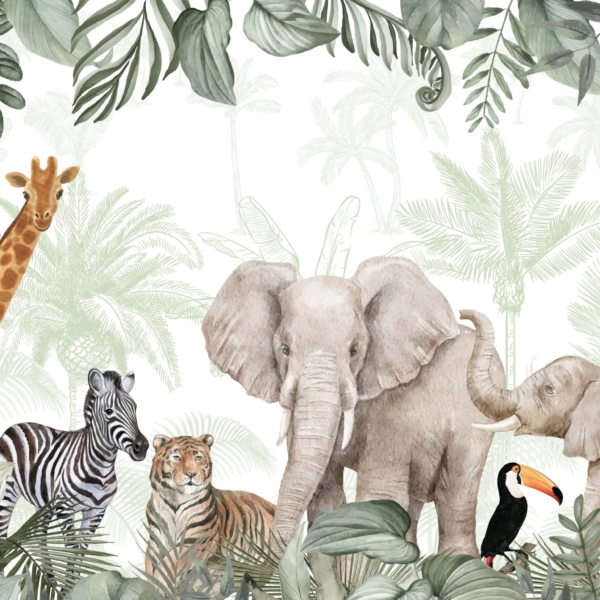 - ANIMALE, BĂIAT, Culori, FATĂ, FRUNZE TROPICALE, NATURĂ, Nuanțe de maro și bej, Pentru cameră, Pentru copii, Pentru Copii, PENTRU COPII, Picturi murale, Stil, Tropical