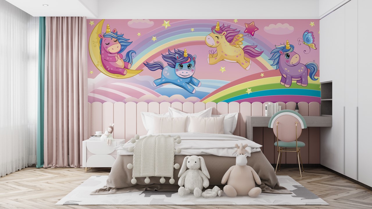O pictură murală cu unicorni este modul perfect de a crea o atmosferă de basm în camera unui copil.