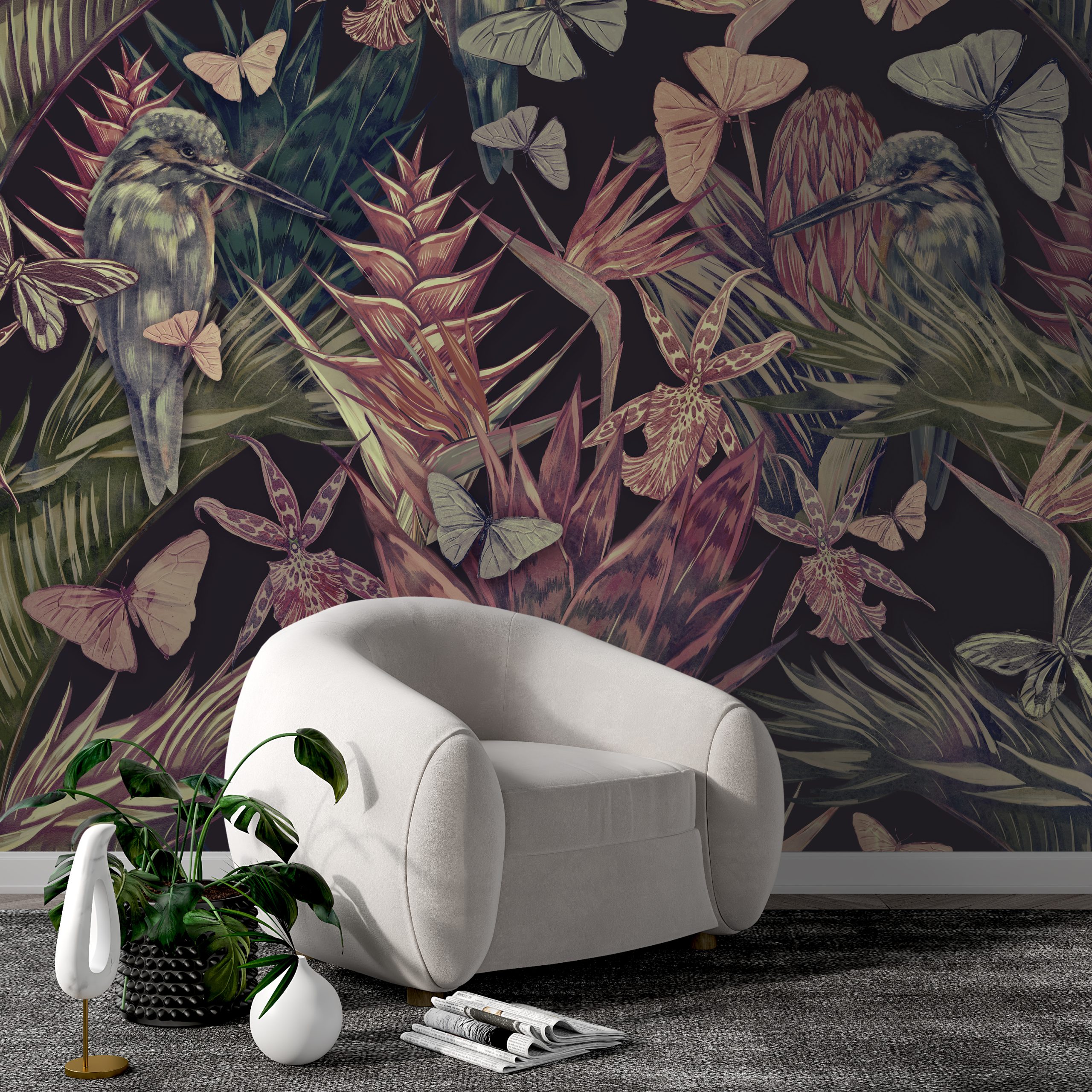 Această frumoasă pictură murală de perete este alegerea perfectă pentru toți iubitorii de natură și de modele delicate și subtile. Păsările ascunse în flori vor da interiorului tău un farmec și o prospețime unică.