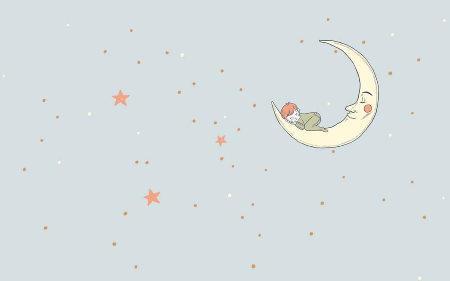 Această pictură murală fermecătoare prezintă un băiat care doarme pe lună, înconjurat de stele și nori. Această imagine magică și liniștită este perfectă pentru o cameră de copii, un dormitor sau un spațiu de relaxare. Cu motivul său fermecător și atmosferic, această pictură murală va crea o atmosferă confortabilă în orice cameră.