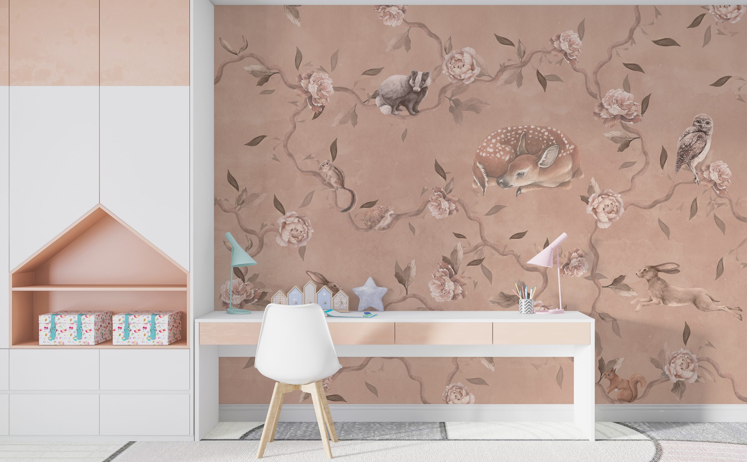 Dacă sunteți în căutarea unui accesoriu perfect pentru o cameră de copii sau un dormitor confortabil, atunci această pictură murală de perete este pentru dumneavoastră. Animalele și trandafirii sunt motive care aduc întotdeauna bucurie și zâmbete pe fețele oamenilor de toate vârstele.
