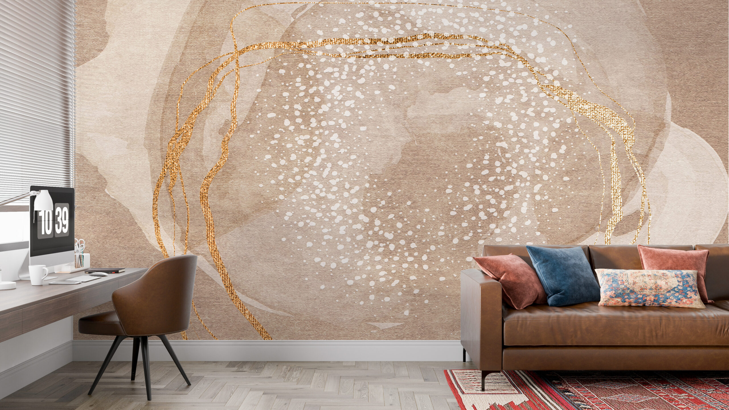 Mural de elemente de aur în bej