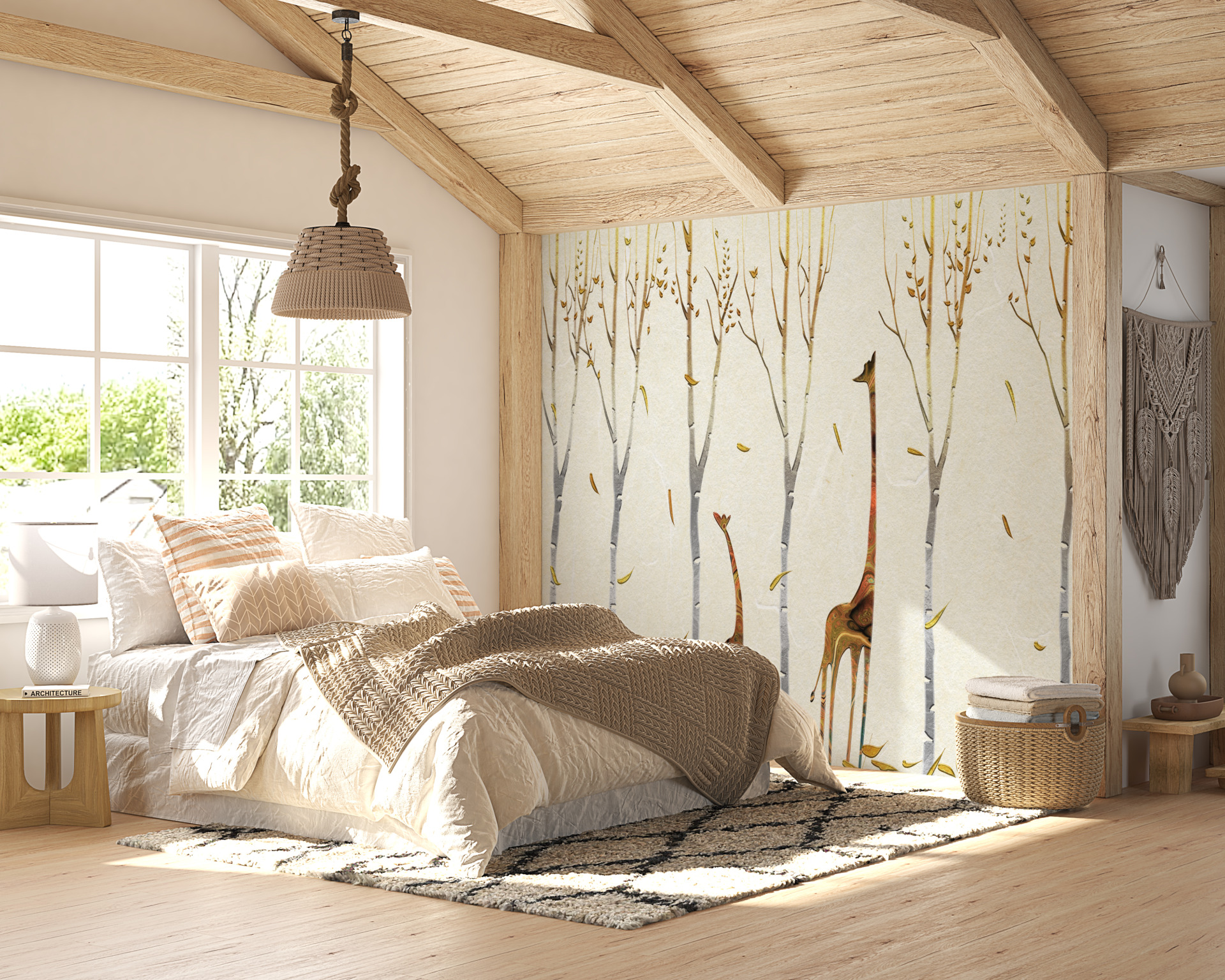 Girafele sunt un simbol al eleganței și delicateței, așa că această pictură murală de perete este perfectă ca decor în dormitor, în camera copiilor sau chiar în birou. Culorile sale discrete se potrivesc multor modele de interior, adăugând o notă subtilă de natură.