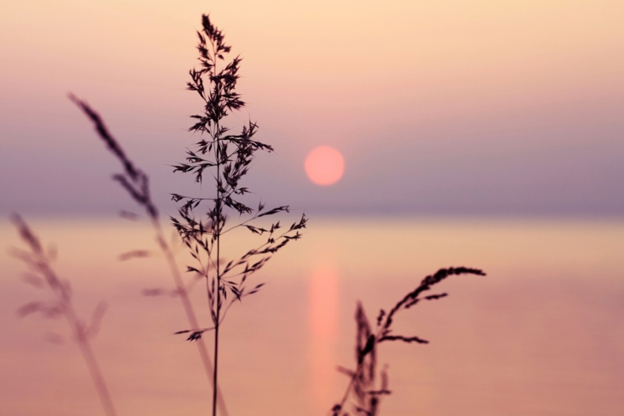 Mural de iarbă în apus de soare