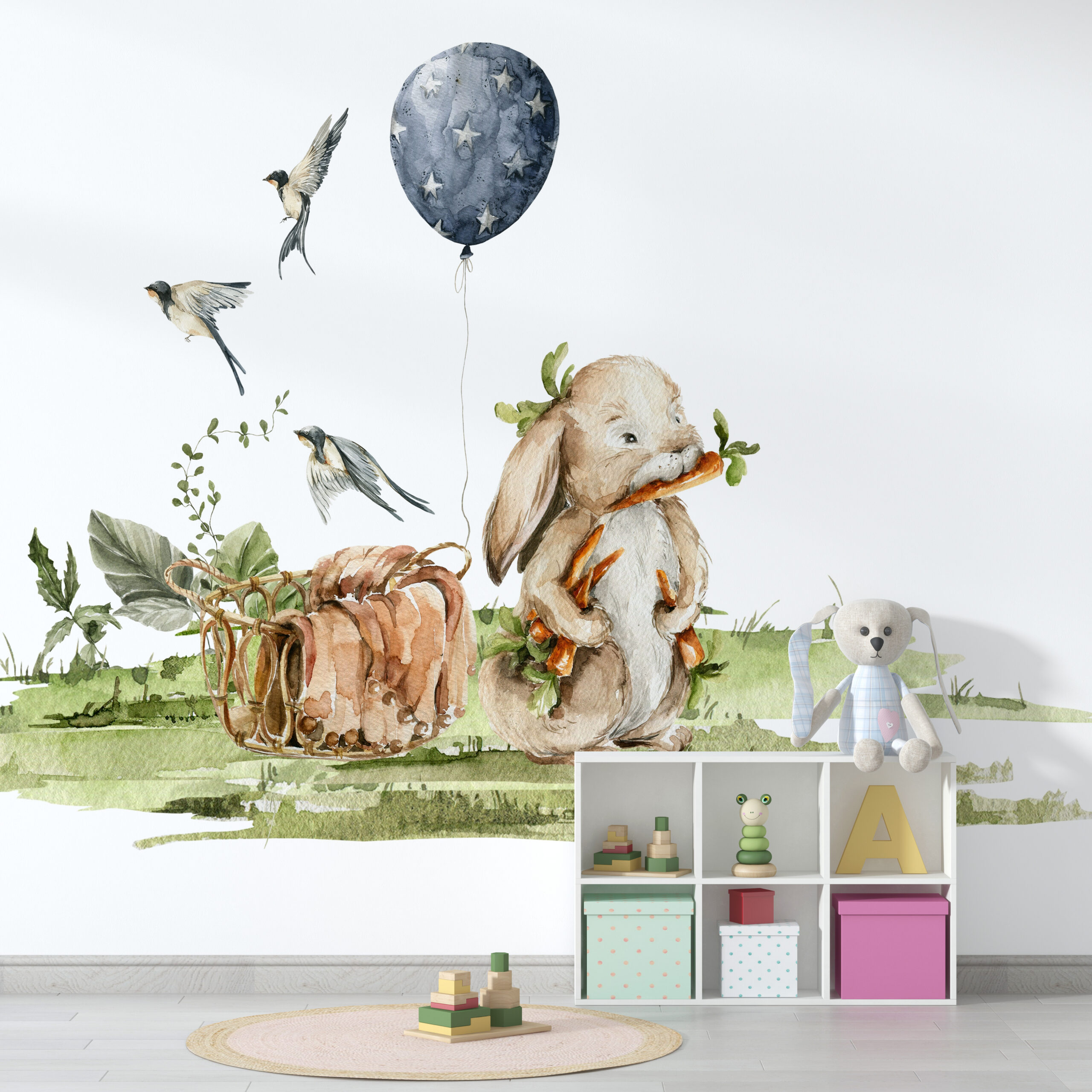 Această pictură murală fermecătoare este ideea perfectă pentru o transformare rapidă și eficientă a interiorului. Adaugă o notă de farmec și culoare în casa ta cu tapetul foto Balloon Hare!