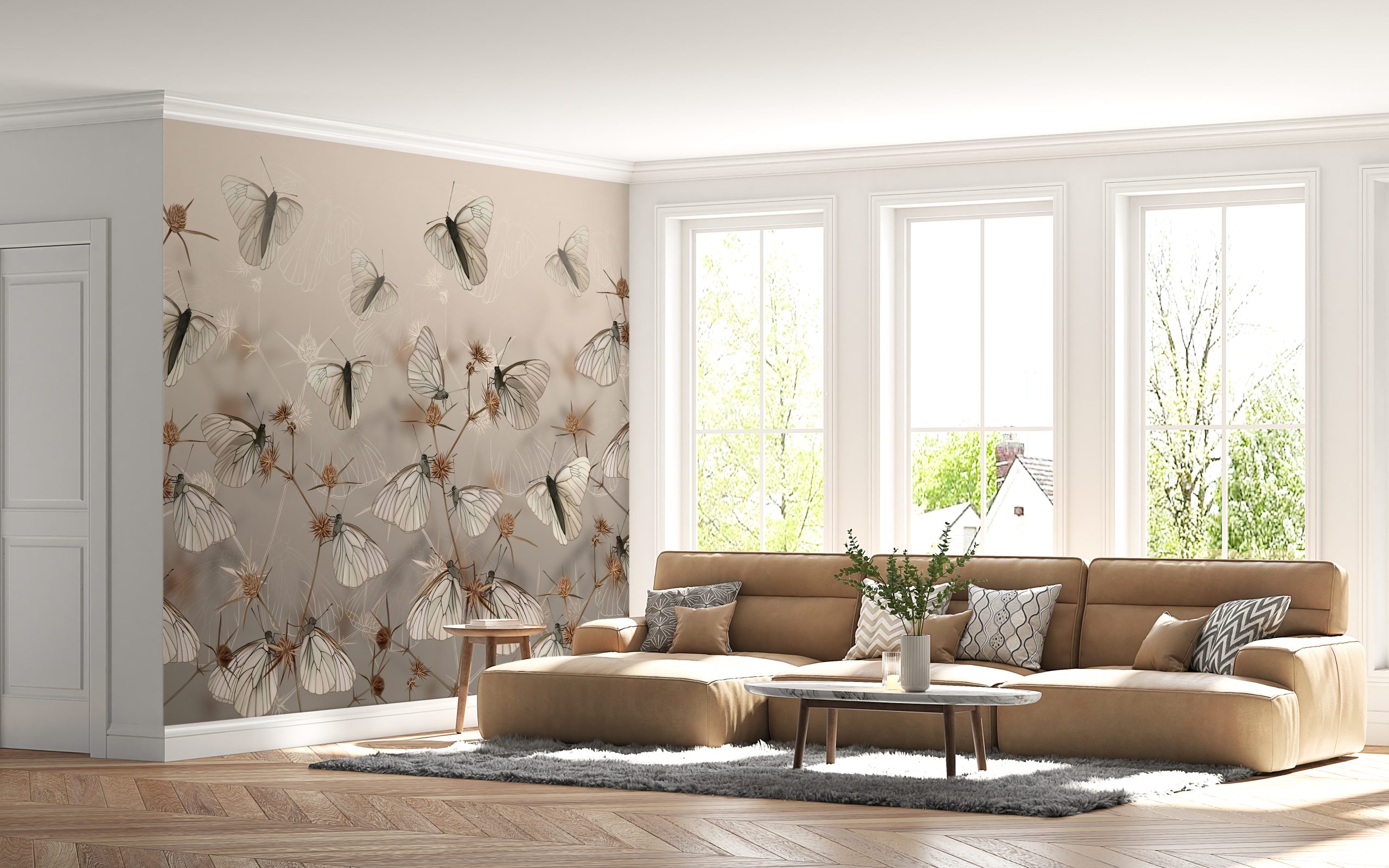 Bucurați-vă de frumusețea naturii în propria casă cu pictura murală de perete Fluturi albi!