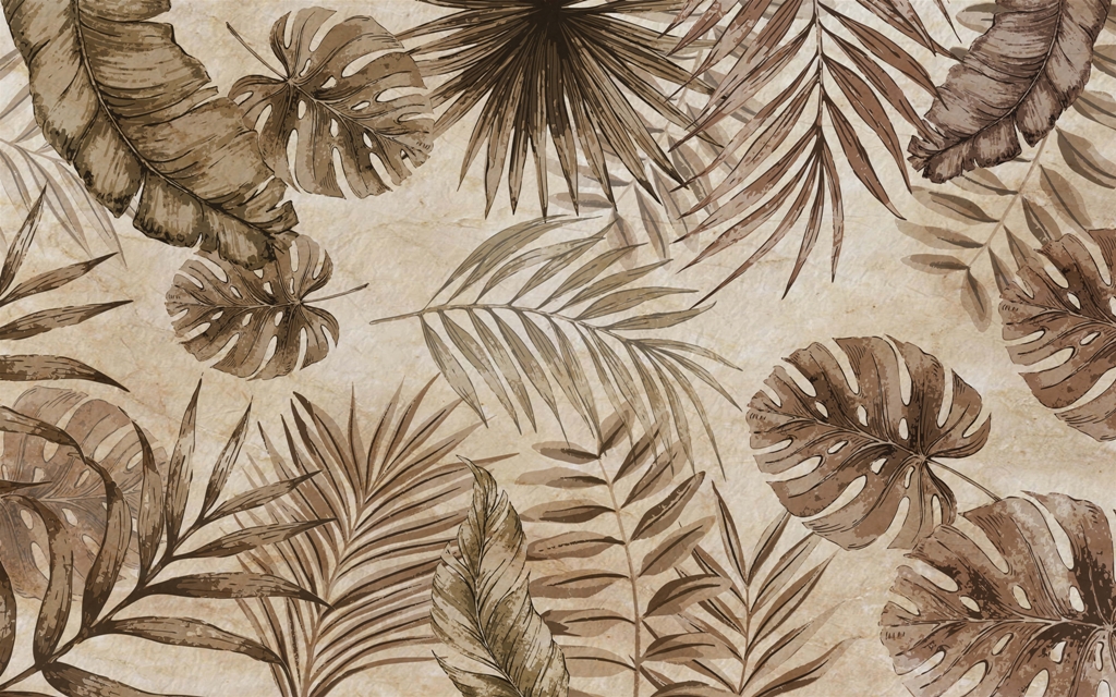 Cu această pictură murală de perete puteți crea o atmosferă unică în orice cameră – dormitor, living, birou sau bucătărie. Frunzele în tonuri de sepia vor adăuga eleganță și modernitate interiorului, introducând în același timp o notă subtilă de exotism.