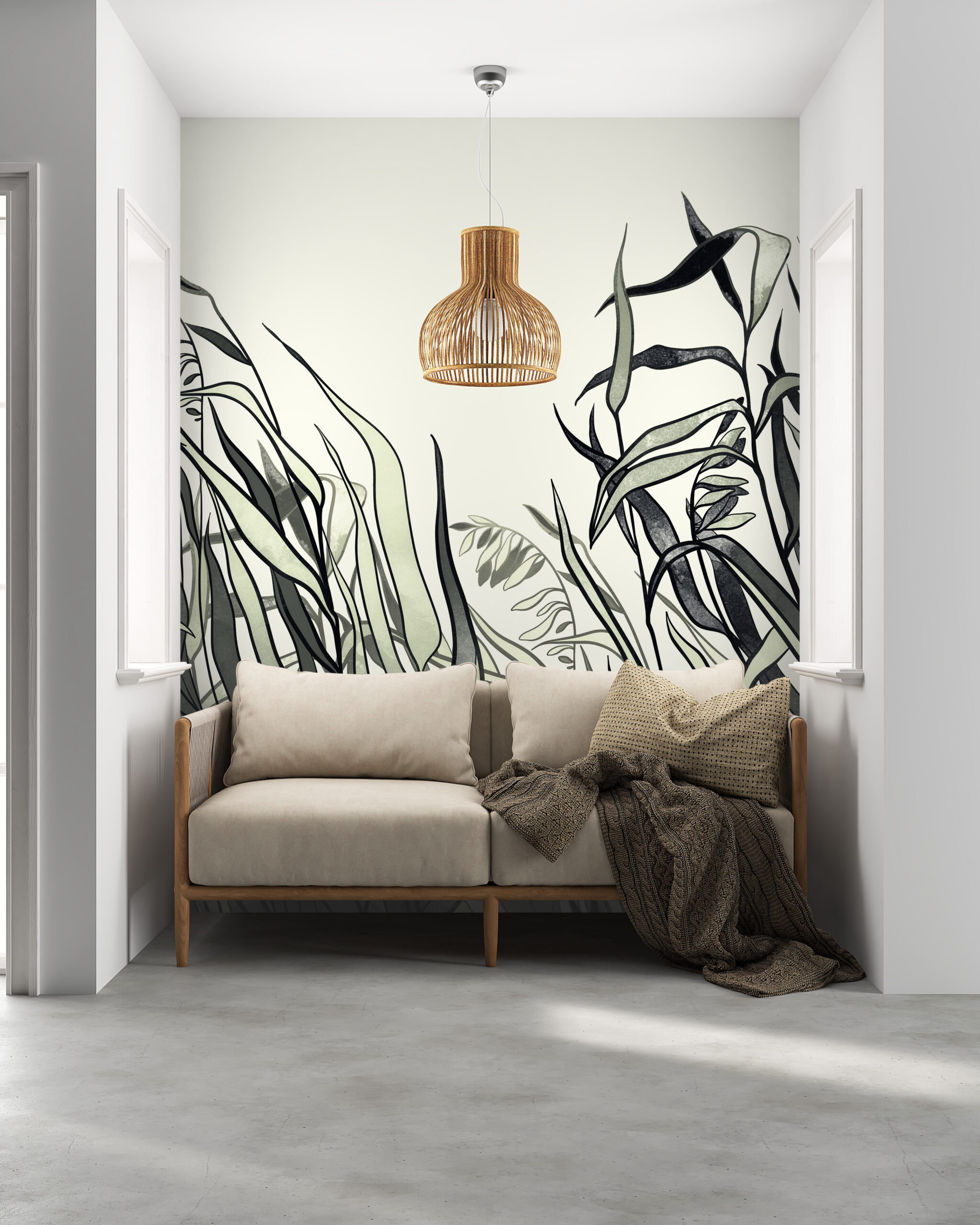 Mural frunze întunecate pe un fundal deschis