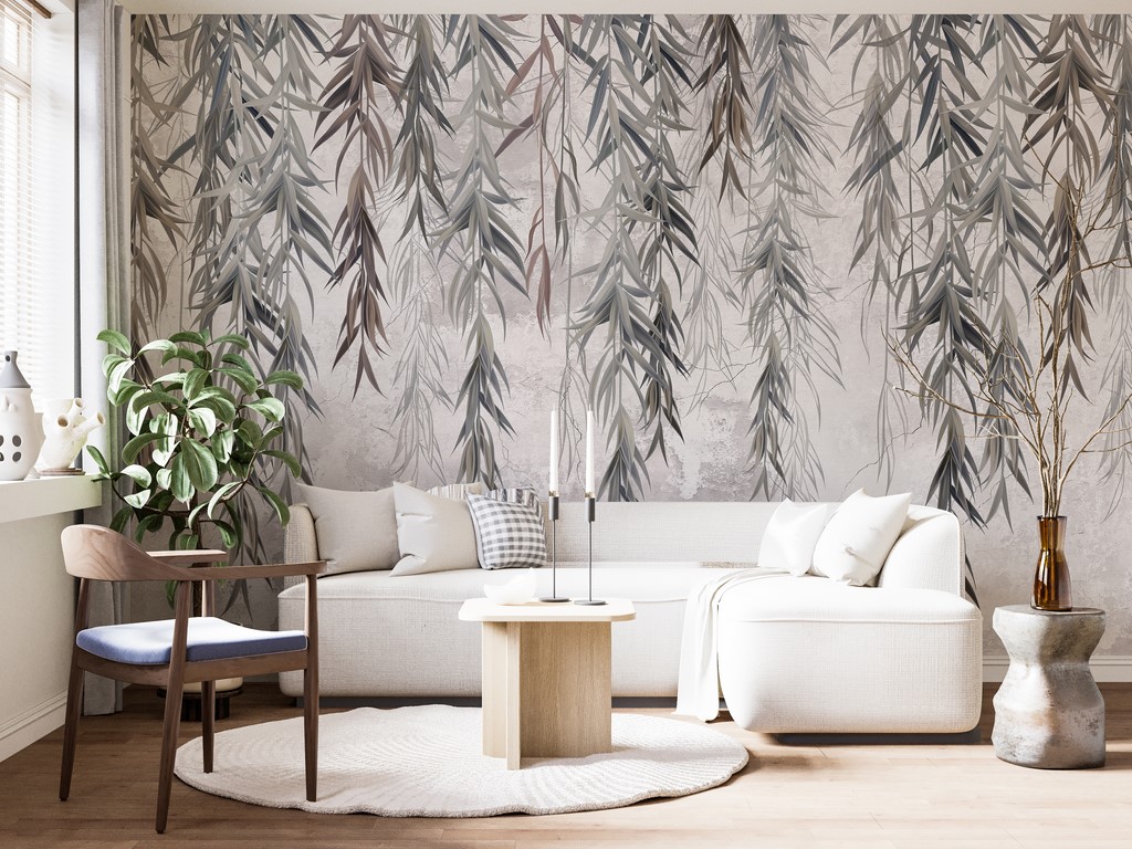 Transportați-vă într-o grădină magică cu această pictură murală fermecătoare, care înfățișează ramuri delicate de salcie gri. Acest motiv subtil este modul perfect de a crea o atmosferă confortabilă în orice cameră.