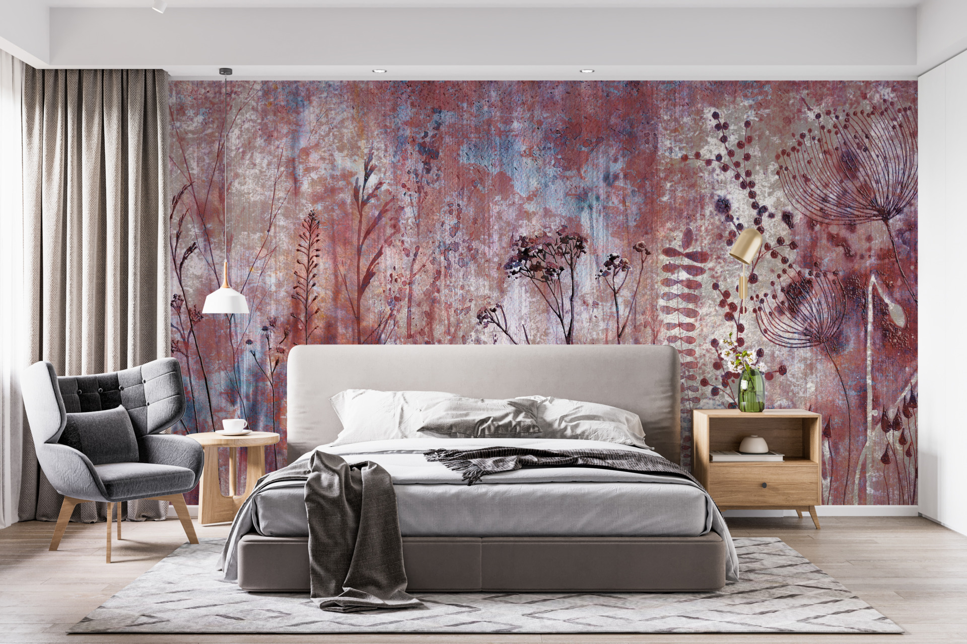 Avantaje ale picturii murale „Pajiște în roșu”: