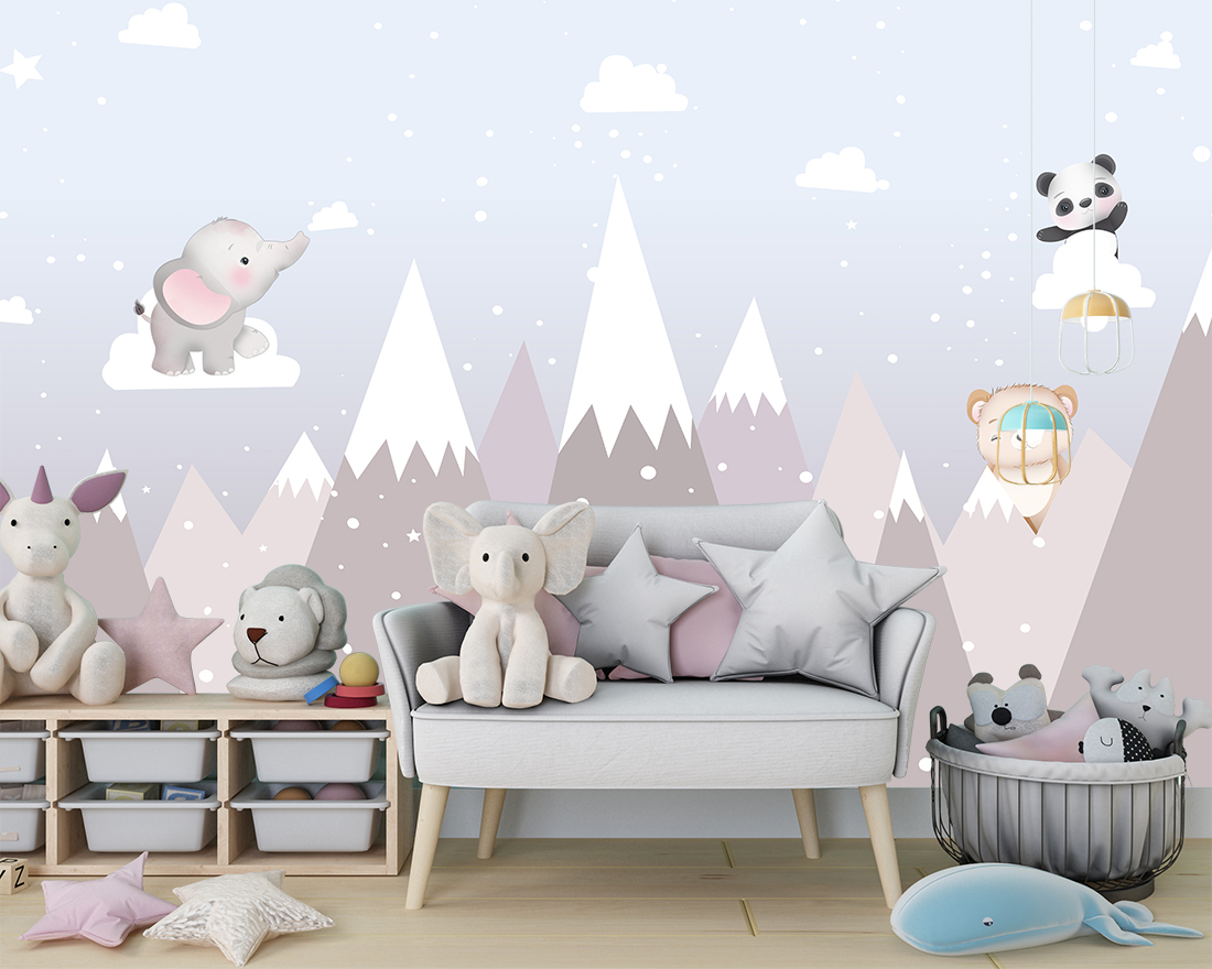 **Mountain Animal Wanderings Mural – Decorațiune drăguță pentru camera copiilor**.
