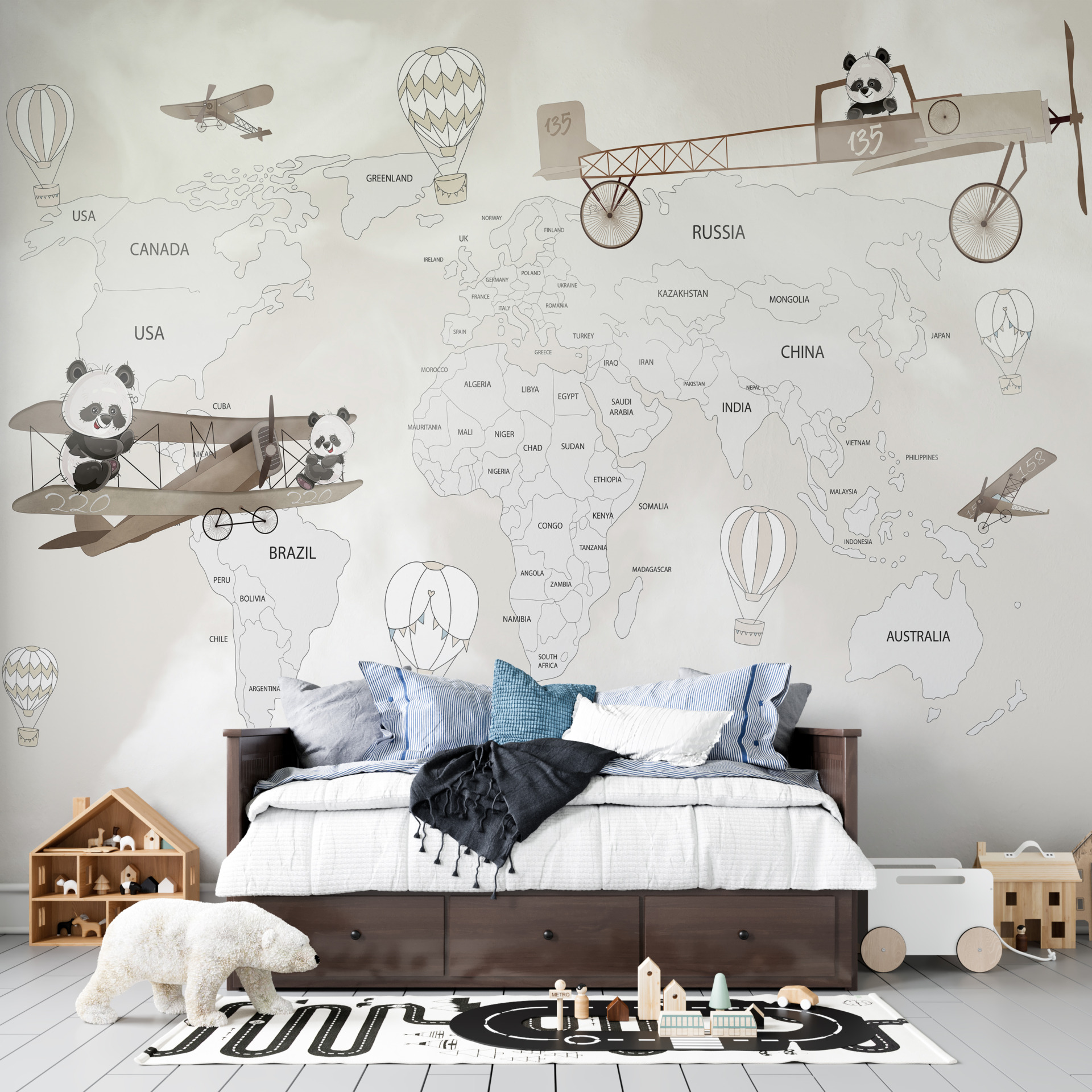 Comandă astăzi o pictură murală panda cu harta lumii și transformă-ți interiorul într-un mod unic!