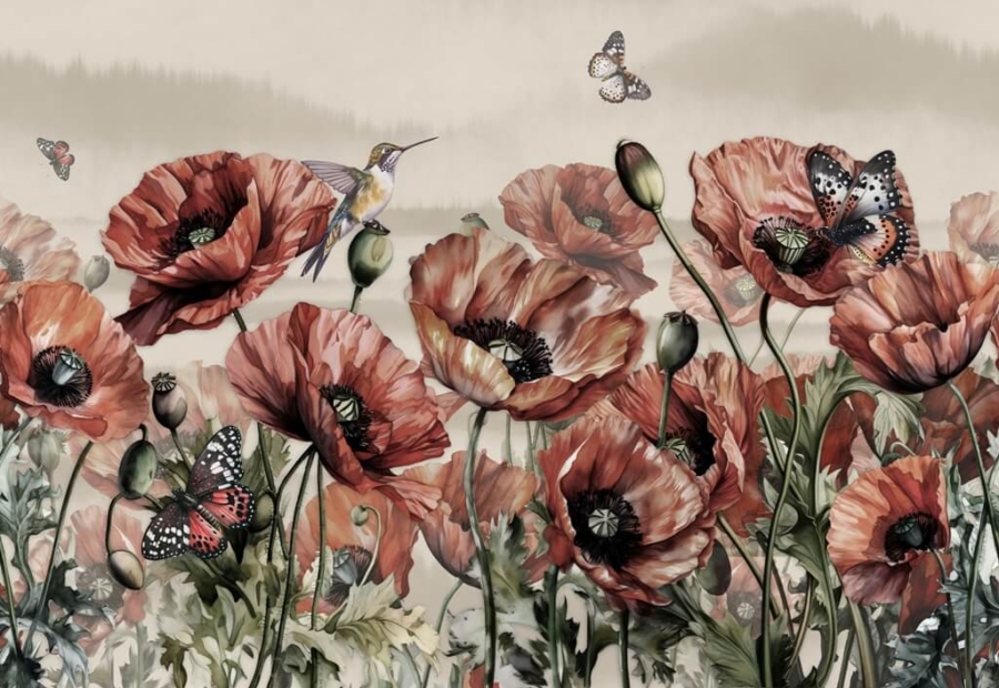 Eliberați-vă creativitatea și reîmprospătați-vă interiorul cu această frumoasă pictură murală de perete cu maci roșii!