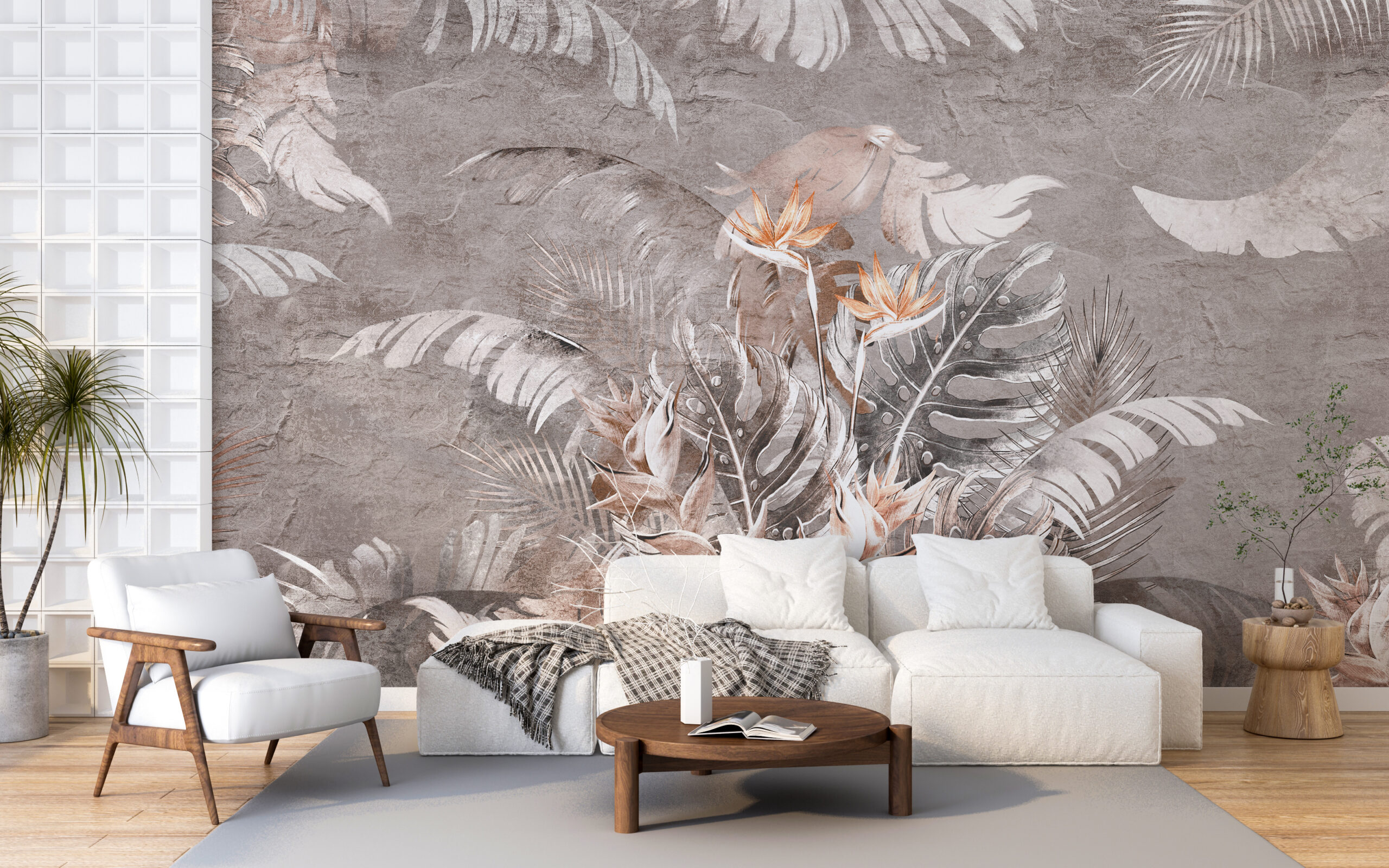 Comandă astăzi pictura murală de perete Floare Strelitzia în gri și creează un spațiu unic care emană frumusețe și armonie.