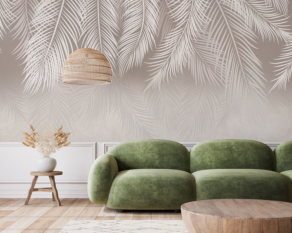 Aduceți o notă de exotism și eleganță subtilă interiorului dvs. cu pictura murală Hanging Leaves. Modelul delicat, bej, de frunze de palmier creează o atmosferă relaxantă și se potrivește perfect cu aranjamentele moderne, scandinave și boho. Ideal pentru camera de zi, dormitor sau birou.