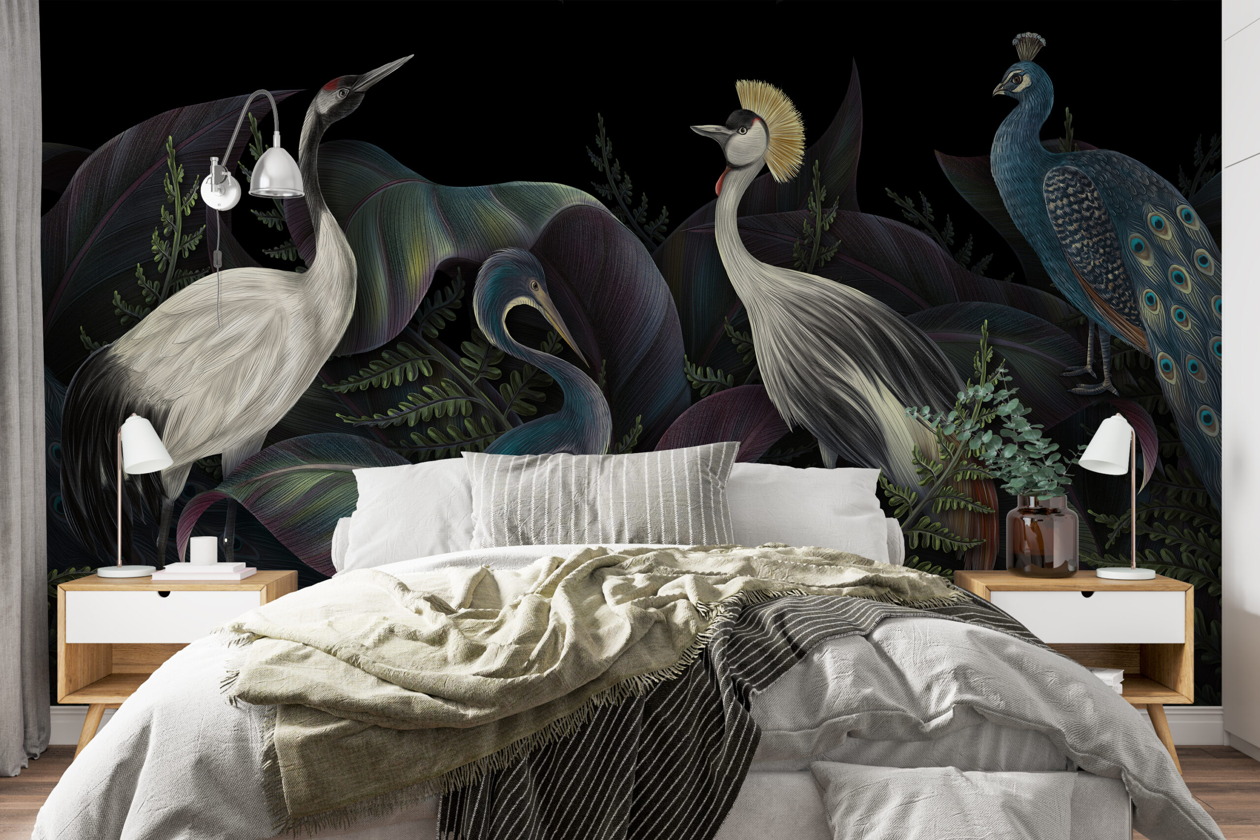 Pictura murală „Păsări demne ” este o combinație neobișnuită de natură și artă, care va da un nou caracter interiorului tău. Această pictură murală de perete prezintă păsări adorabile în habitatul lor natural, care vor adăuga subtilitate și delicatețe unei încăperi.