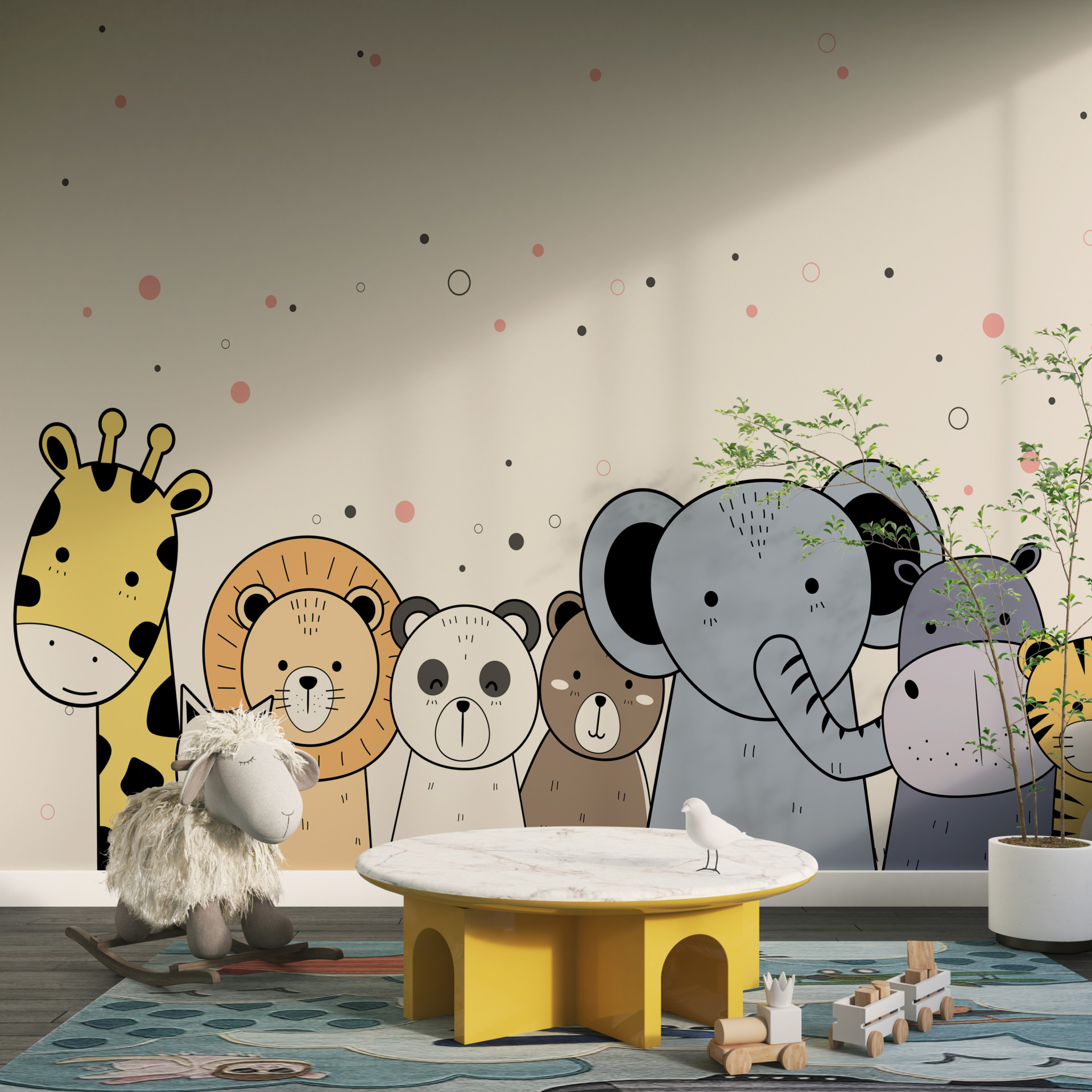 Această pictură murală fermecătoare înfățișează animale colorate din junglă în habitatul lor natural. Acesta va da interiorului dvs. un aer exotic și îl va face mai primitor și mai plin de viață.