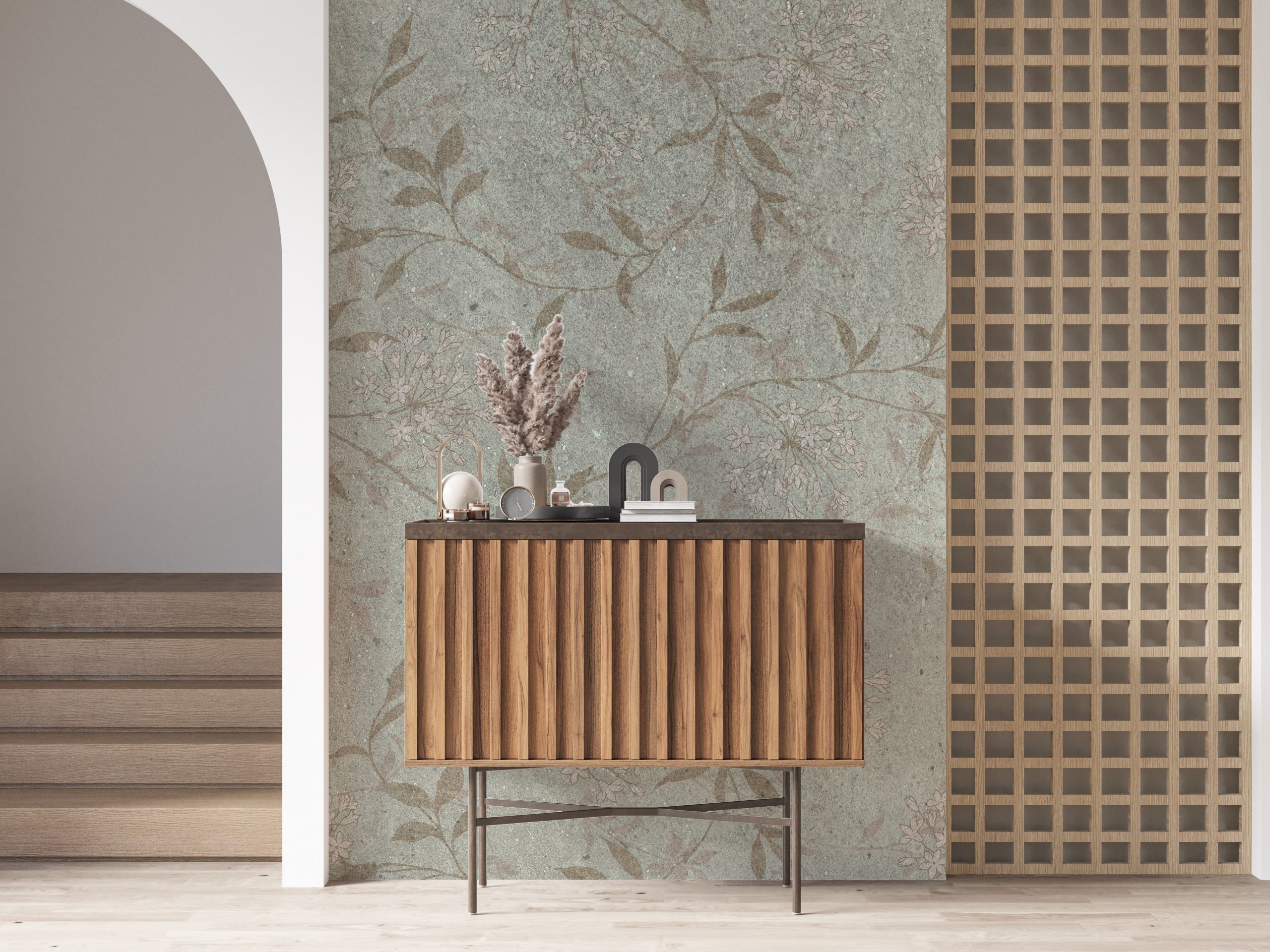 Această pictură murală fermecătoare înfățișează ramuri delicate crescând pe un perete, care va adăuga confort și natură oricărei încăperi.