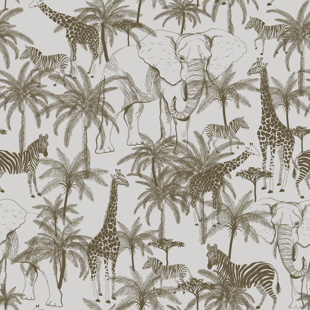 Tapet „Animalele de sub palmieri” – o aventură exotică, un decor vesel și o atmosferă magică în camera unui copil