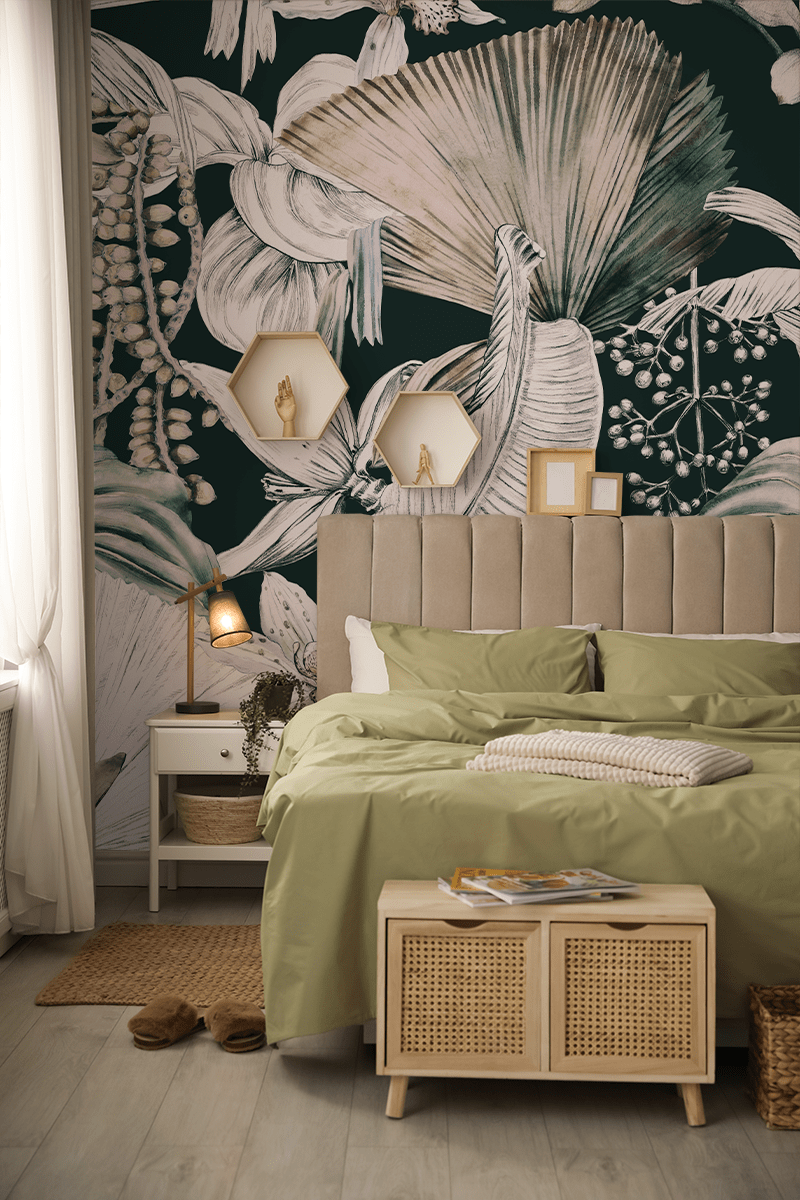 Aduceți un strop de natură în casa dvs. cu tapetul foto „Green Harmony”. Modelul frumos, inspirat din botanică, combină delicatețea frunzelor, florilor și culori subtile care aduc pace și echilibru oricărui spațiu. Verdele, bejul și nuanțele calde ale florilor creează o senzație de apropiere de natură, adăugând în același timp un caracter elegant interiorului.