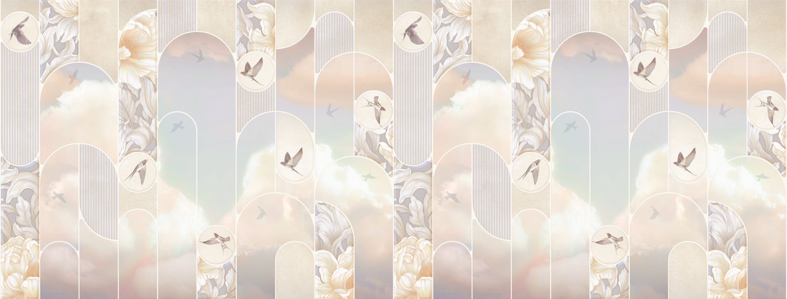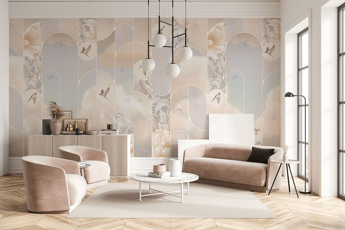 Deschide-ți casa către confort și ușurință cu tapetul foto „Touch of Heaven”. Acest model incredibil de delicat, inspirat de nori și cer pastelat, introduce în interior o senzație de pace, spațiu și o atmosferă de vis. Tonuri deschise, tranziții de culori delicate și o compoziție subtilă creează un efect care relaxează simțurile și liniștește mintea.