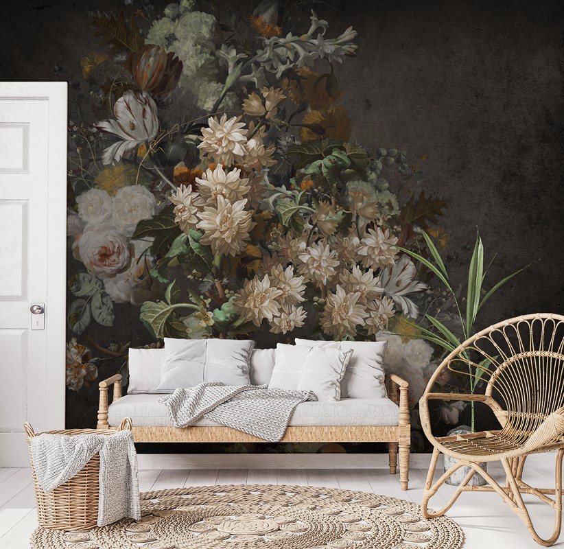 Fototapetul Buchet Misterios – un joc artistic de flori pe peretele tău