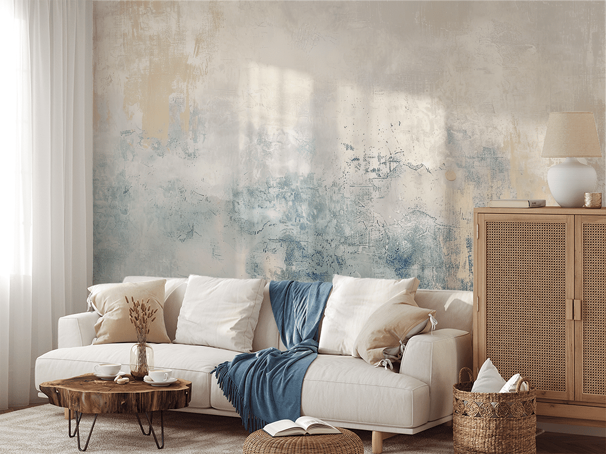 Introduce o senzație de pace și luminozitate în spațiul tău cu tapetul foto „Morning Mist”. Acest model atmosferic, abstract, în nuanțe de gri, bej și albastru estompat, evocă o dimineață liniștită învăluită în ceață – plină de tranziții tonale delicate și contururi moi. Efectul seamănă cu structura unui perete deteriorat sau a unui fundal pictat, conferind camerei un caracter unic.