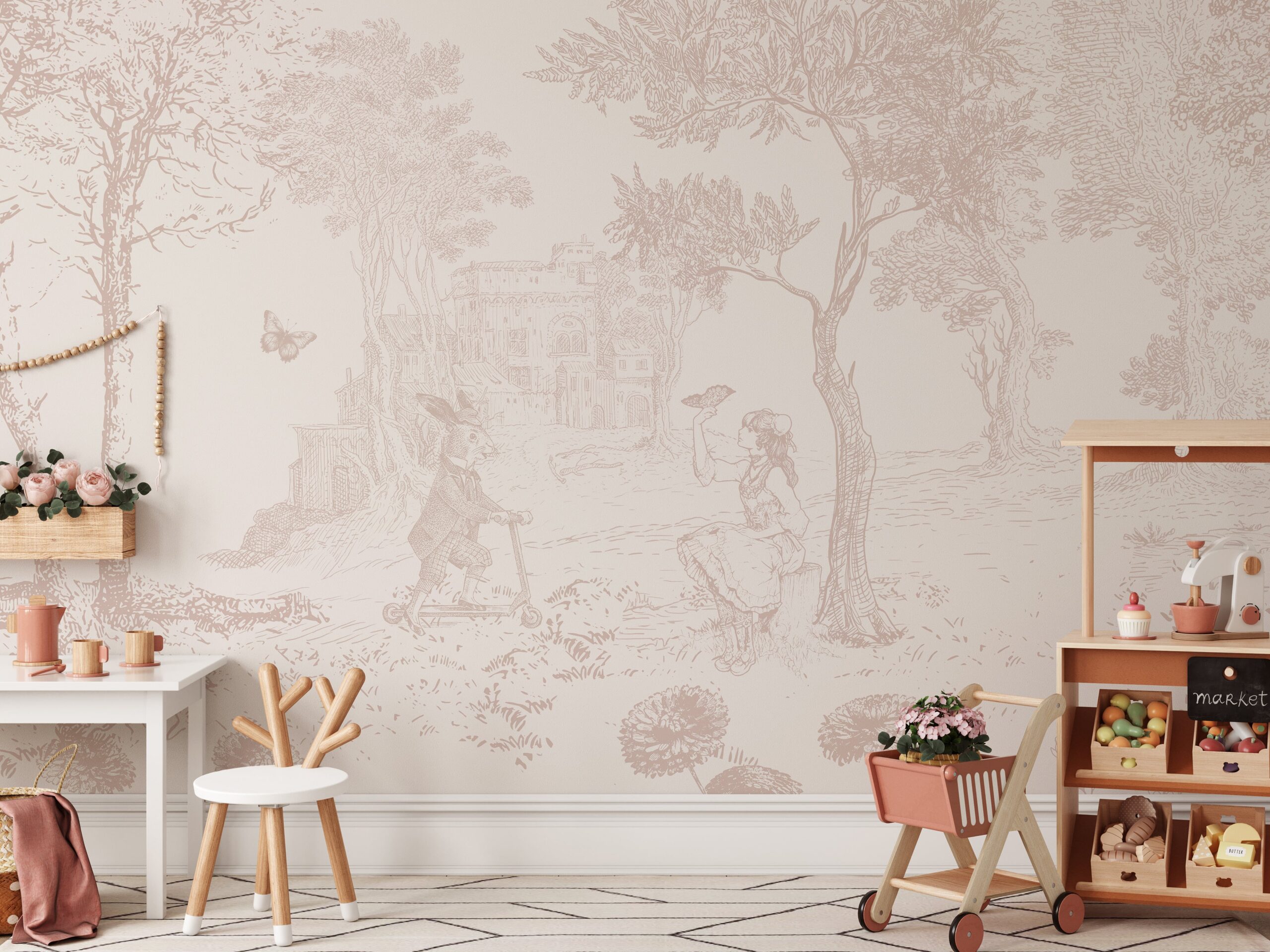 Colț de basm – un fototapet subtil pentru camera unui copil