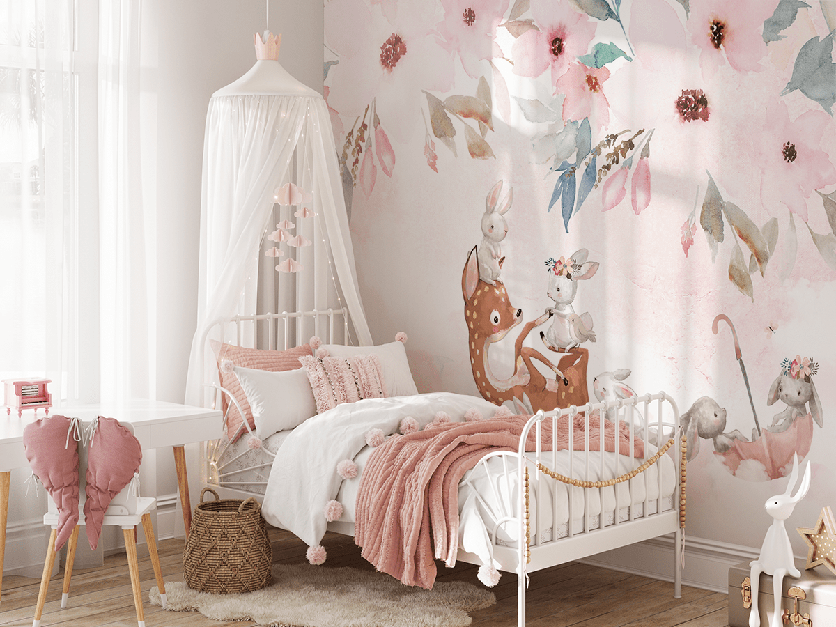 Fototapet „Colțul Roz al Prieteniei” – o lume de basm, animale adorabile și un tărâm pastelat al viselor copiilor