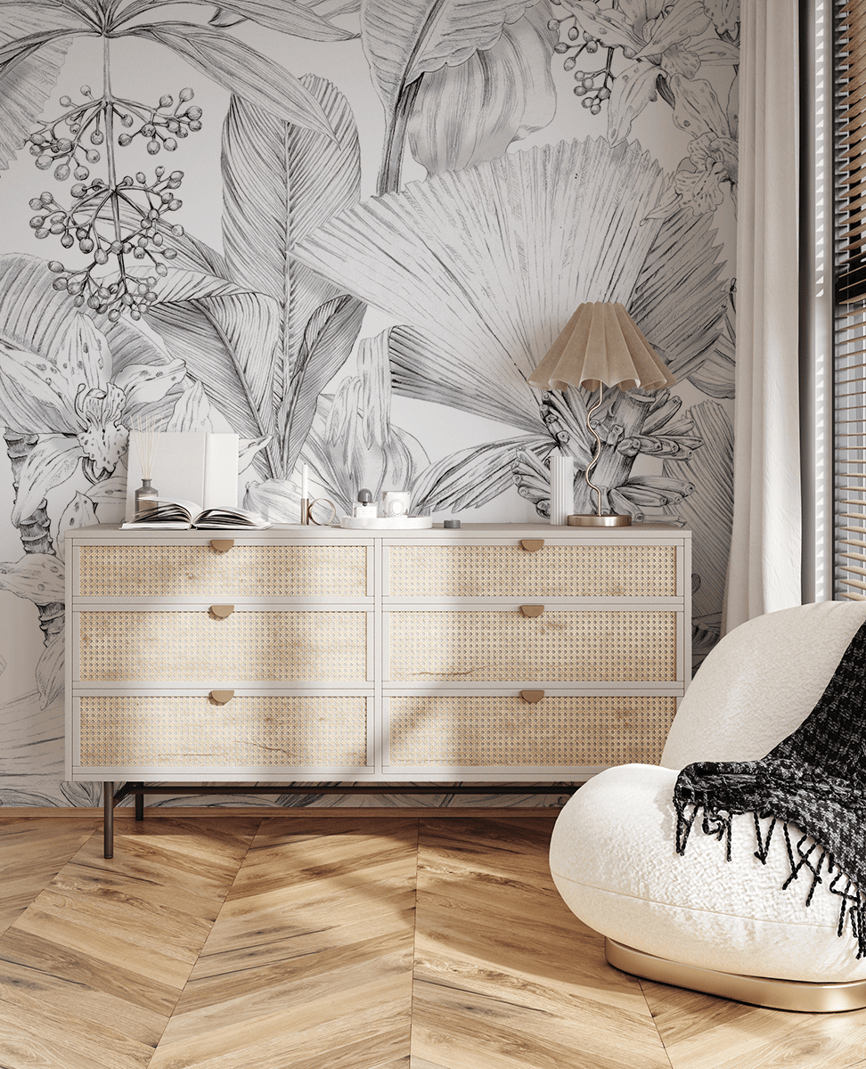 Introduceți o atmosferă unică în casa dvs. cu fototapetul „Eleganță Botanică”. Acest motiv botanic alb-negru, meticulos lucrat, inspirat de gravurile botanice clasice, conferă interioarelor o atmosferă subtilă, calmă și elegantă. Liniile delicate și culorile estompate se îmbină perfect atât cu aranjamentele moderne, cât și cu cele tradiționale.
