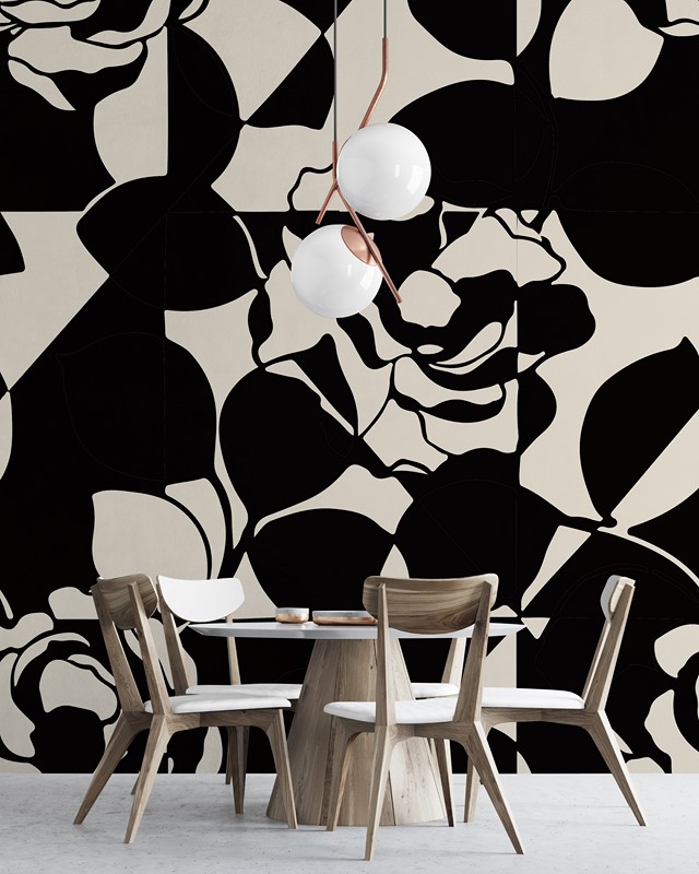 Etichete: artă murală abstractă, decorațiune murală, flori, Fototapet abstract, Fototapet artistic, fototapet cu motiv floral, fototapet pentru sufragerie, motiv interior elegant, negru