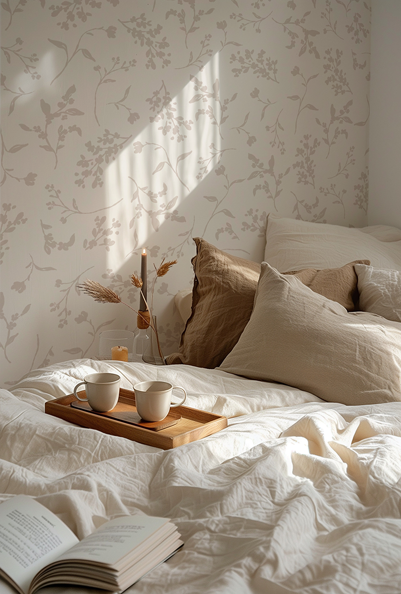 Fototapet „Flori de Dimineață” – Luminozitatea Naturii, Eleganță Subtilă și Armonie în Interior