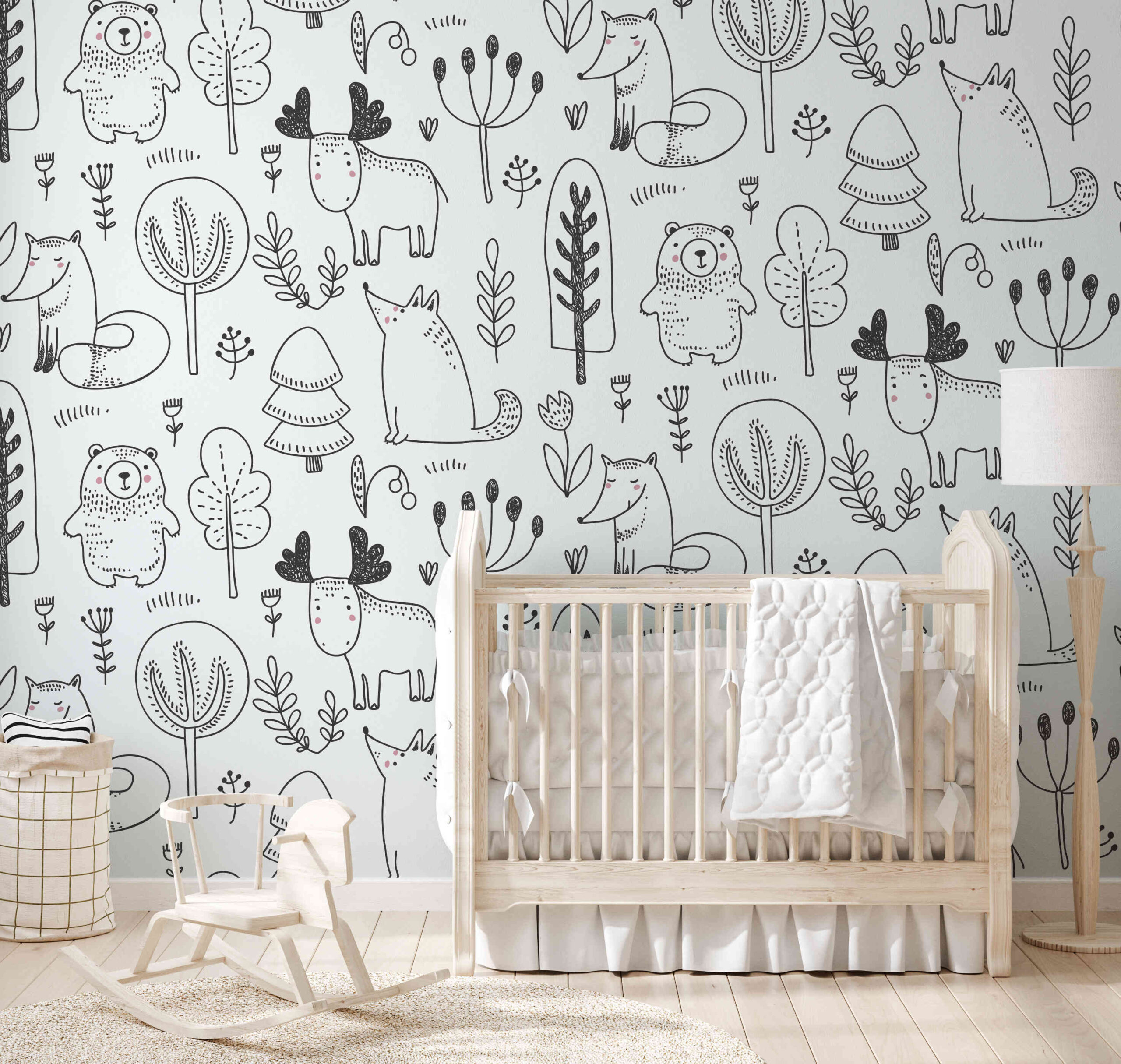 Invită ursuleți de pluș adorabili, vulpi și elani în camera ta cu fototapetul „Jucării de pluș din pădure”. Acest model distractiv, desenat manual, în alb-negru, cu accente delicate de roz, te va transporta într-o lume a pădurii plină de căldură și prietenie. Personaje simple și drăguțe vor face interiorul confortabil și plin de bucurie copilărească.
