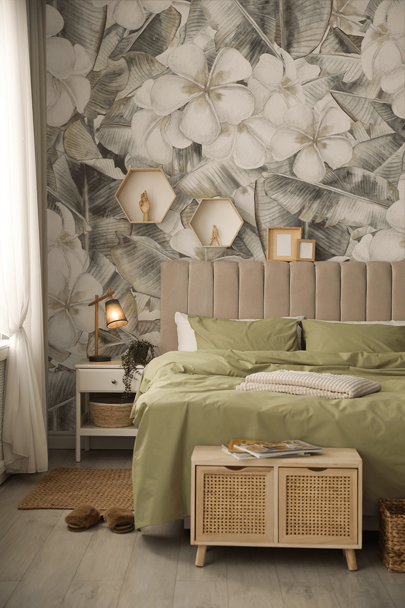 Aduceți o notă de prospețime și liniște în casa dvs. cu fototapetul „Flori albe”. Acest model botanic captivant, plin de flori albe și frunze verzi, creează o atmosferă armonioasă și naturală, care va înviora orice spațiu. Nuanțele delicate, pastelate și detaliile meticuloase ale modelului evocă o atmosferă calmă și subtilă, perfect potrivită pentru interioarele scandinave, minimaliste sau în stil clasic.