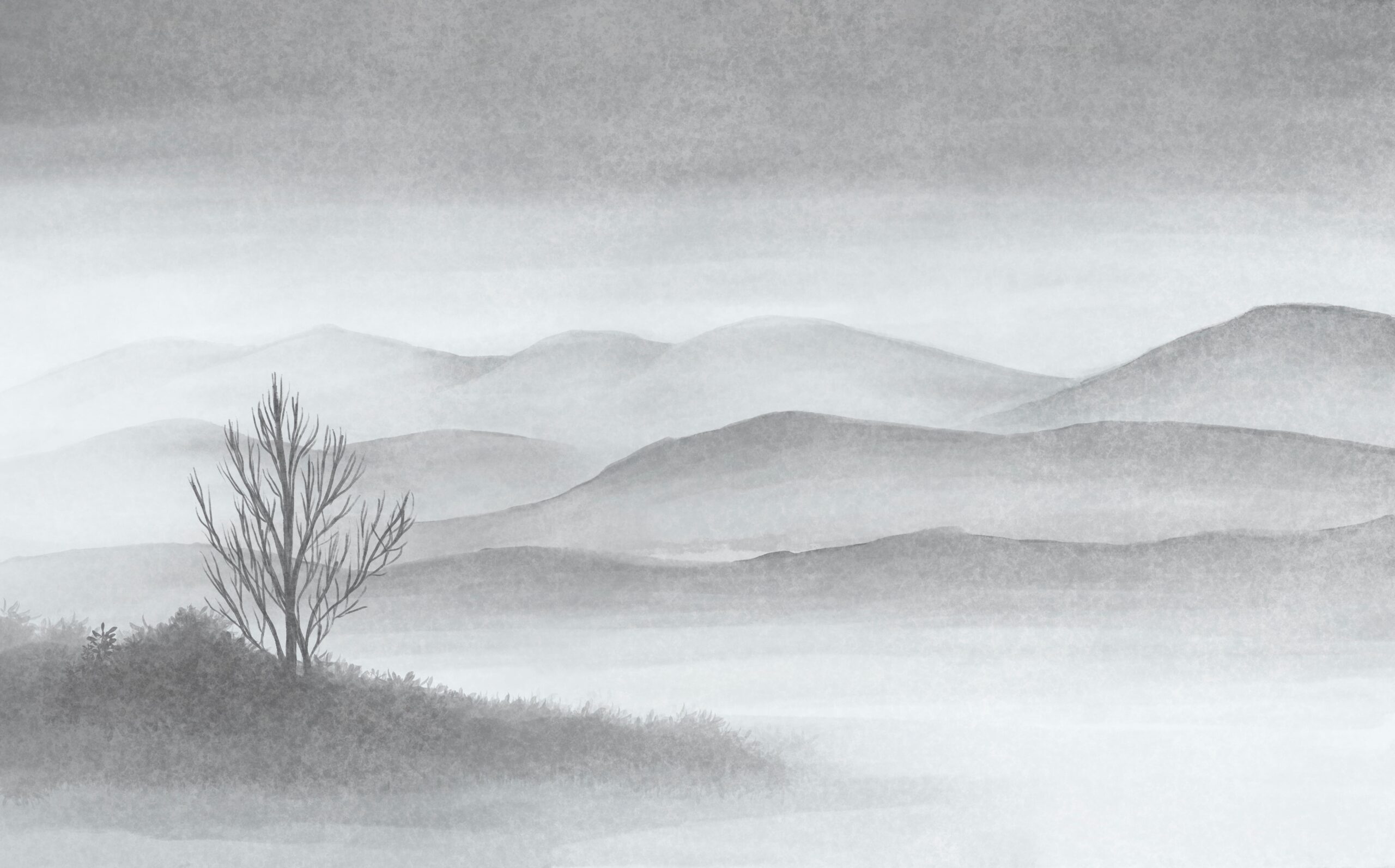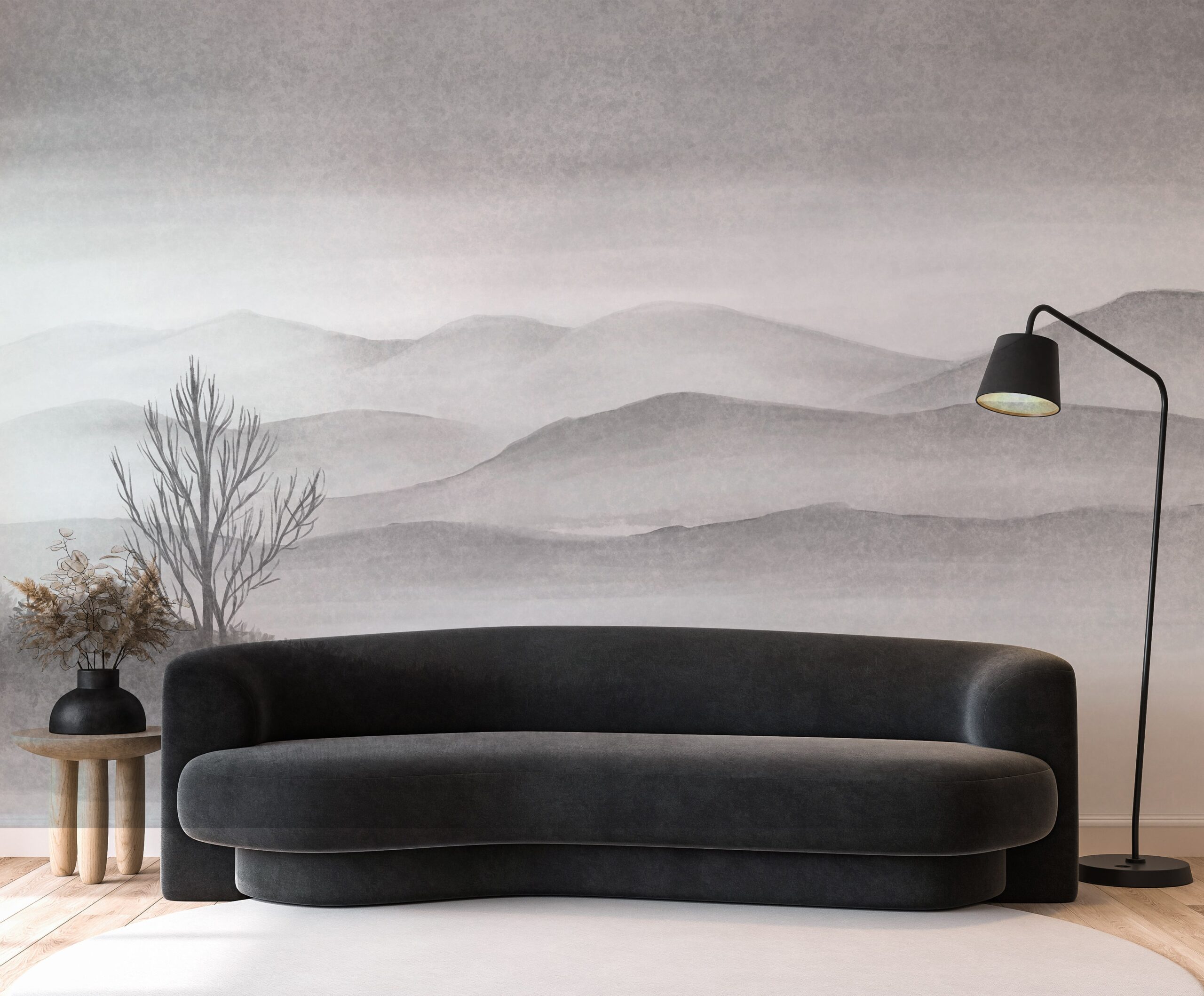 Fototapet „Misty Horizon” – subtilitate peisagistică, armonie monocromatică și un decor unic inspirat de natură