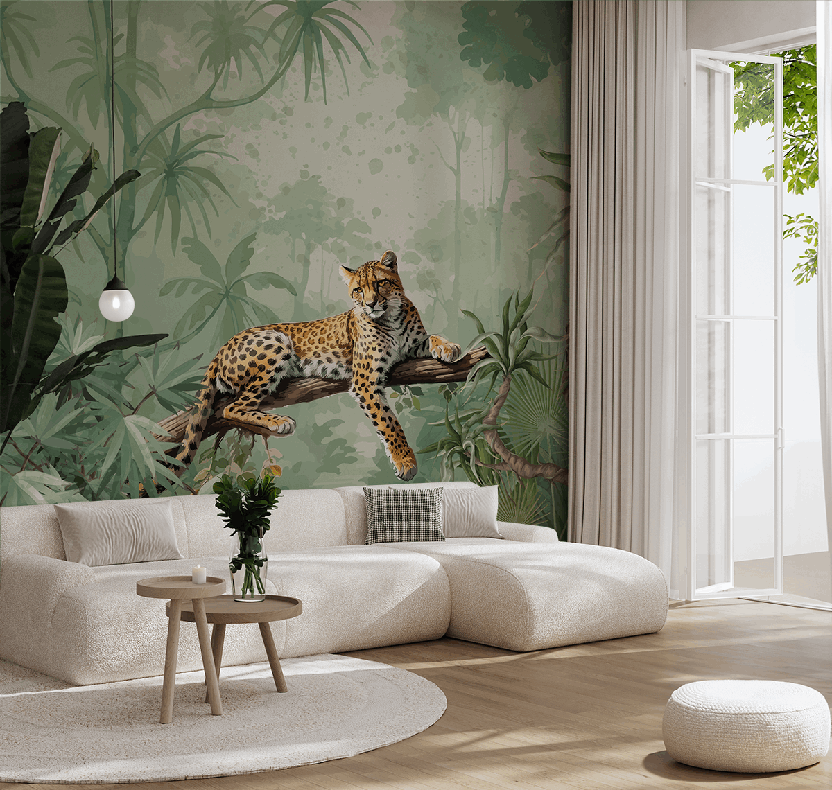 Fototapetul „Jungle Tranquility” – armonie tropicală, eleganță sălbatică și relaxare profundă în inima naturii
