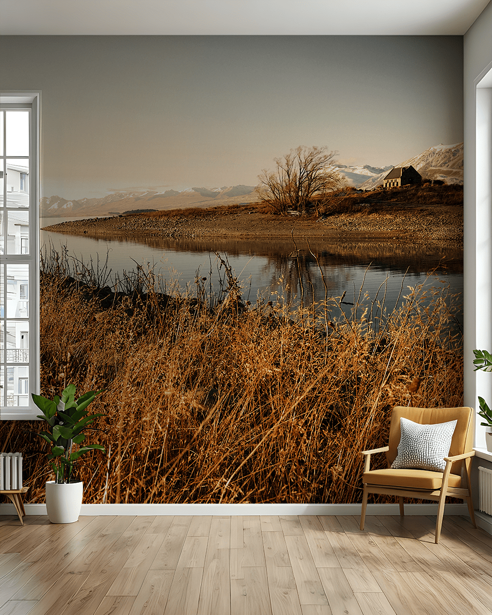 Aduceți un sentiment unic de liniște în casa dvs. cu fototapetul „Pacea lacului”. Această priveliște pitorească, înfățișând apele calme ale unui lac înconjurat de ierburi aurii și munți maiestuoși, aduce o atmosferă de pace și relaxare în spațiu. Nuanțele delicate de auriu și albastru și o reflexie subtilă în apă creează fundalul perfect pentru orice interior, conferindu-i un caracter unic, natural.