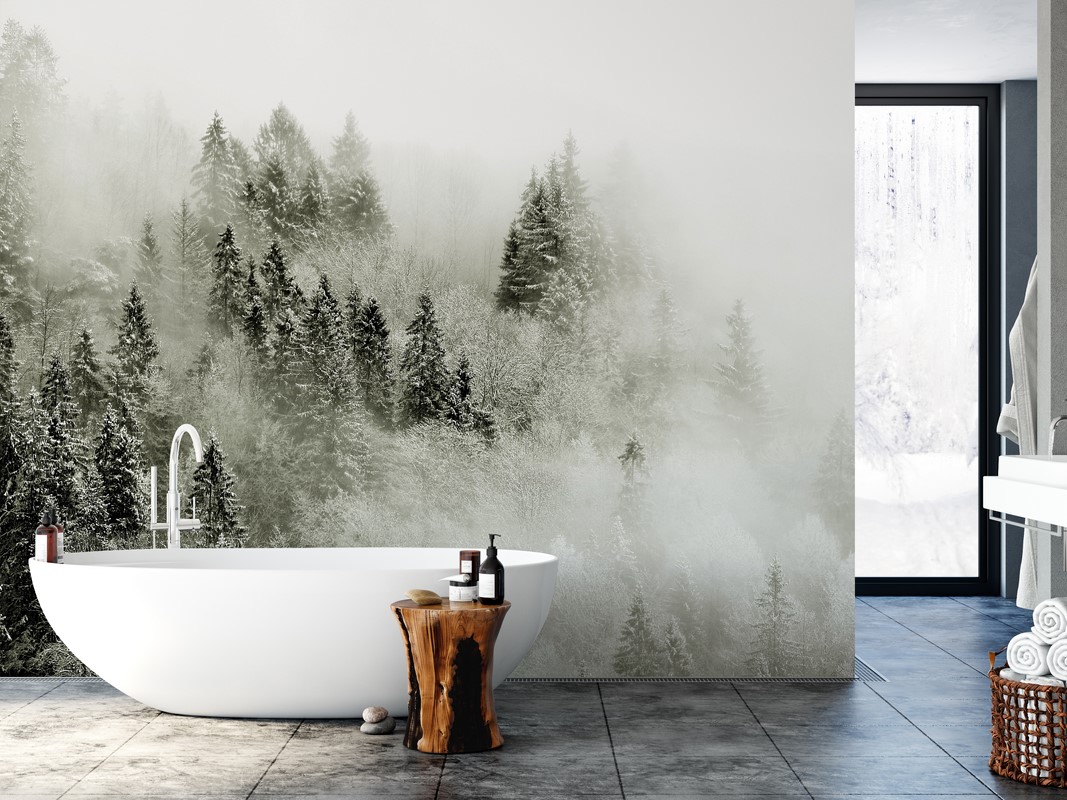 Tapetul Pădure de iarnă în ceață este o decorațiune care aduce în interiorul dumneavoastră o atmosferă unică de liniște, magie și misterul evaziv al naturii. O pădure acoperită de ceață, iluminată delicat de lumina zorilor, evocă un sentiment de imersiune într-un peisaj de iarnă – copaci abia conturați printre tonuri blânde, pastelate. Spațiul curge din contururile cețoase, creând o atmosferă de contemplare și liniște, perfectă pentru un living, dormitor, birou sau spațiu de wellness. Tapetul surprinde profunzimea naturală a peisajului și introduce o spațiozitate și o eleganță subtilă în interior. În aranjamentele scandinave, minimaliste sau rustice, este un accent unic care promovează relaxarea și echilibrul estetic.