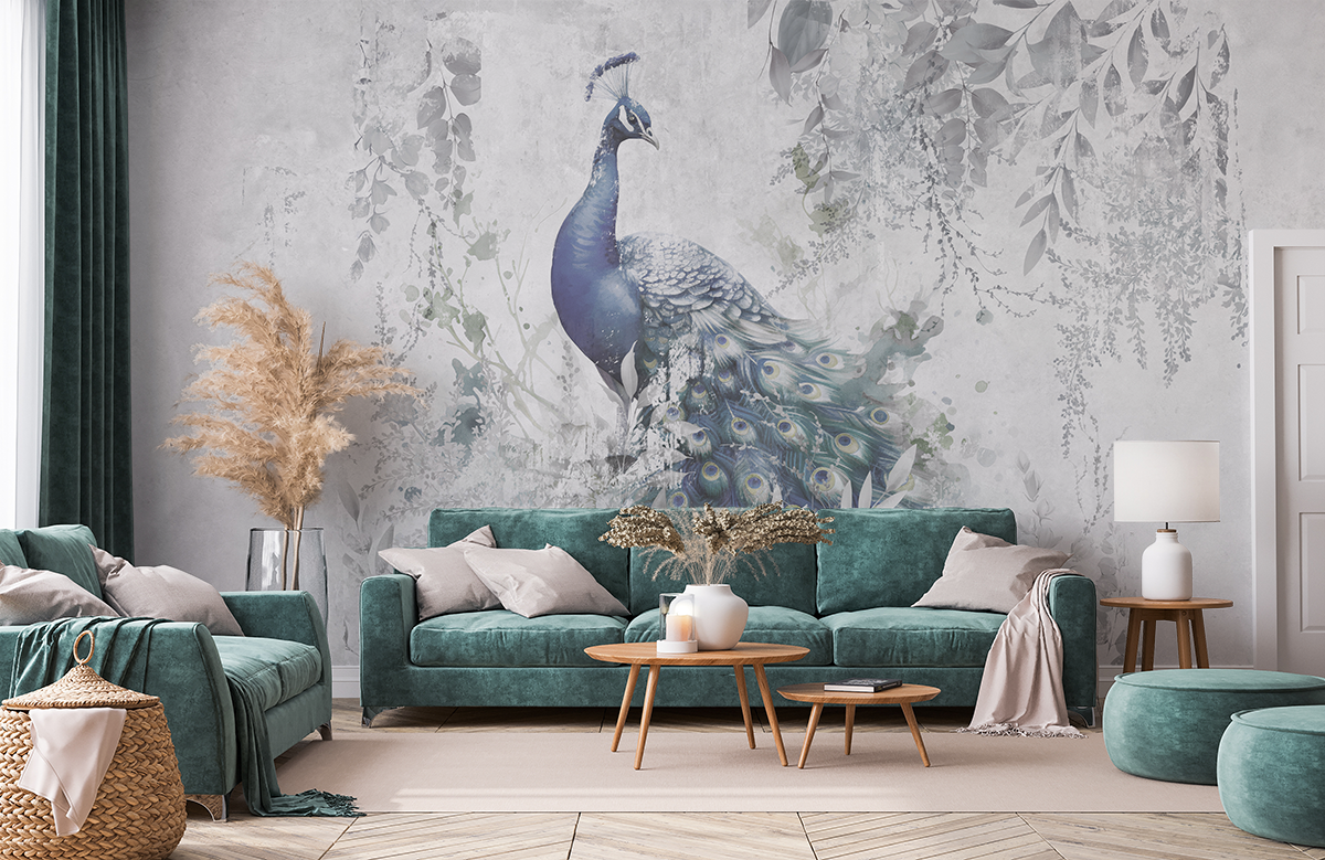 Fototapetul „Peisaj de vis cu păun” – o aură nobilă, o ușurință senzuală și o profunzime artistică a naturii