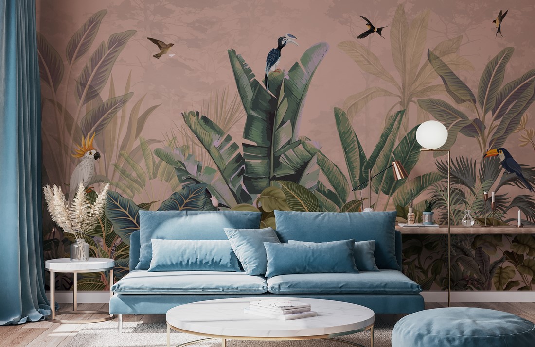 - ANIMALE, FLORI, FRUNZE TROPICALE, NATURĂ, PENTRU BIROU, Pentru cameră, PENTRU DORMITOR, PENTRU SUFRAGERIE, Picturi murale, Culori, Multicolor, Stil, Tropical