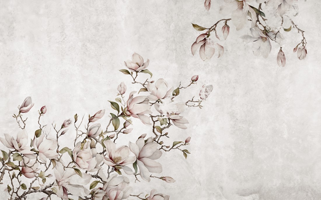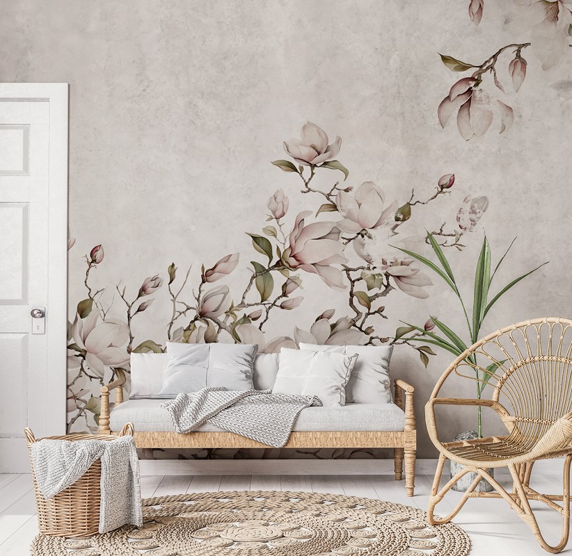 Fototapetul cu ramuri de magnolie – farmecul subtil al naturii în interiorul tău