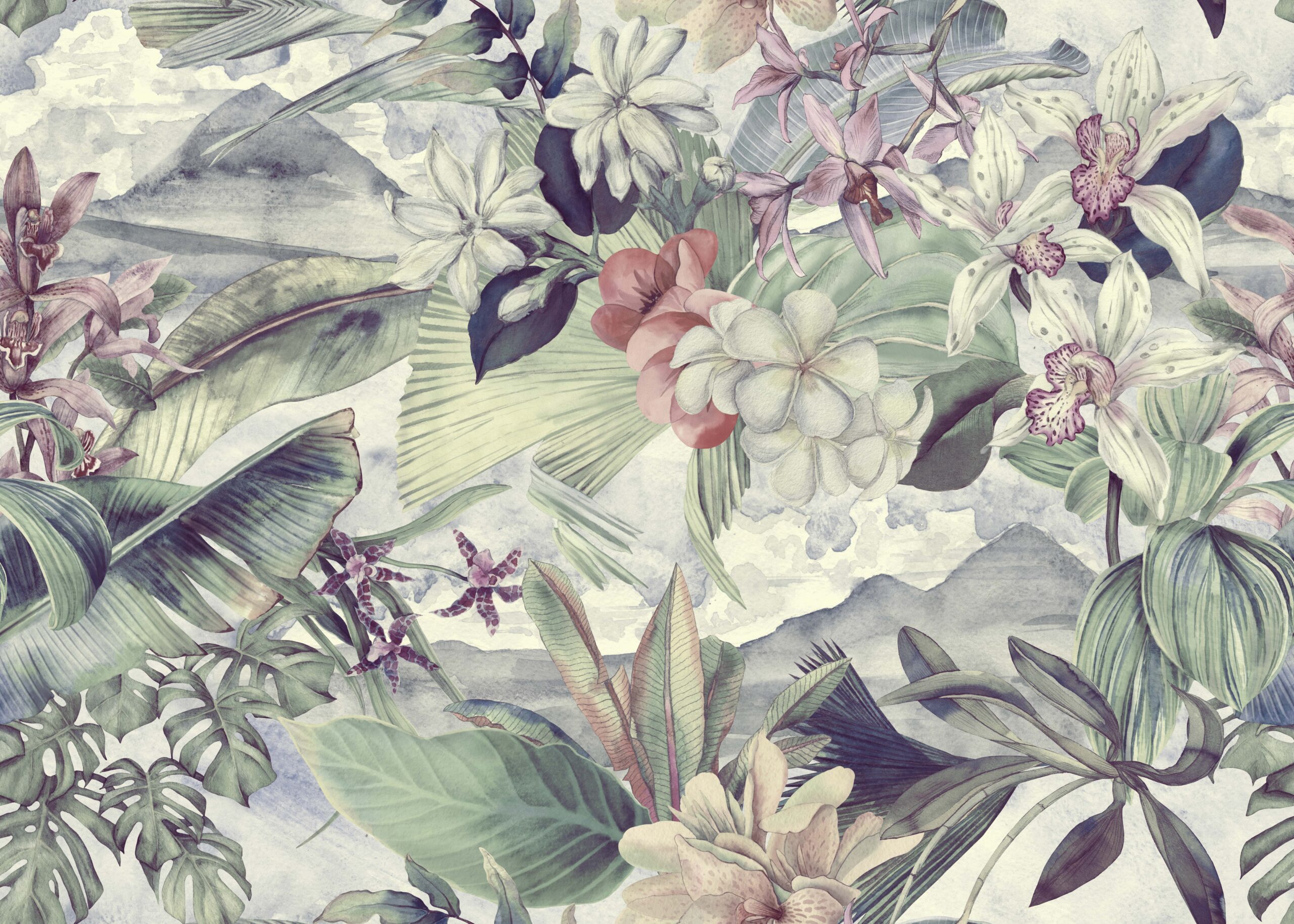 Aduceți o atmosferă unică în casa dvs. cu fototapetul „Respirația Tropicelor”. Acest model elaborat cu minuțiozitate, cu frunze și flori tropicale în culori pastelate subtile, evocă atmosfera unei jungle exotice, adăugând prospețime și armonie spațiului. Detaliile delicate și o paletă de culori naturale se potrivesc perfect atât în aranjamente moderne, cât și în cele clasice.
