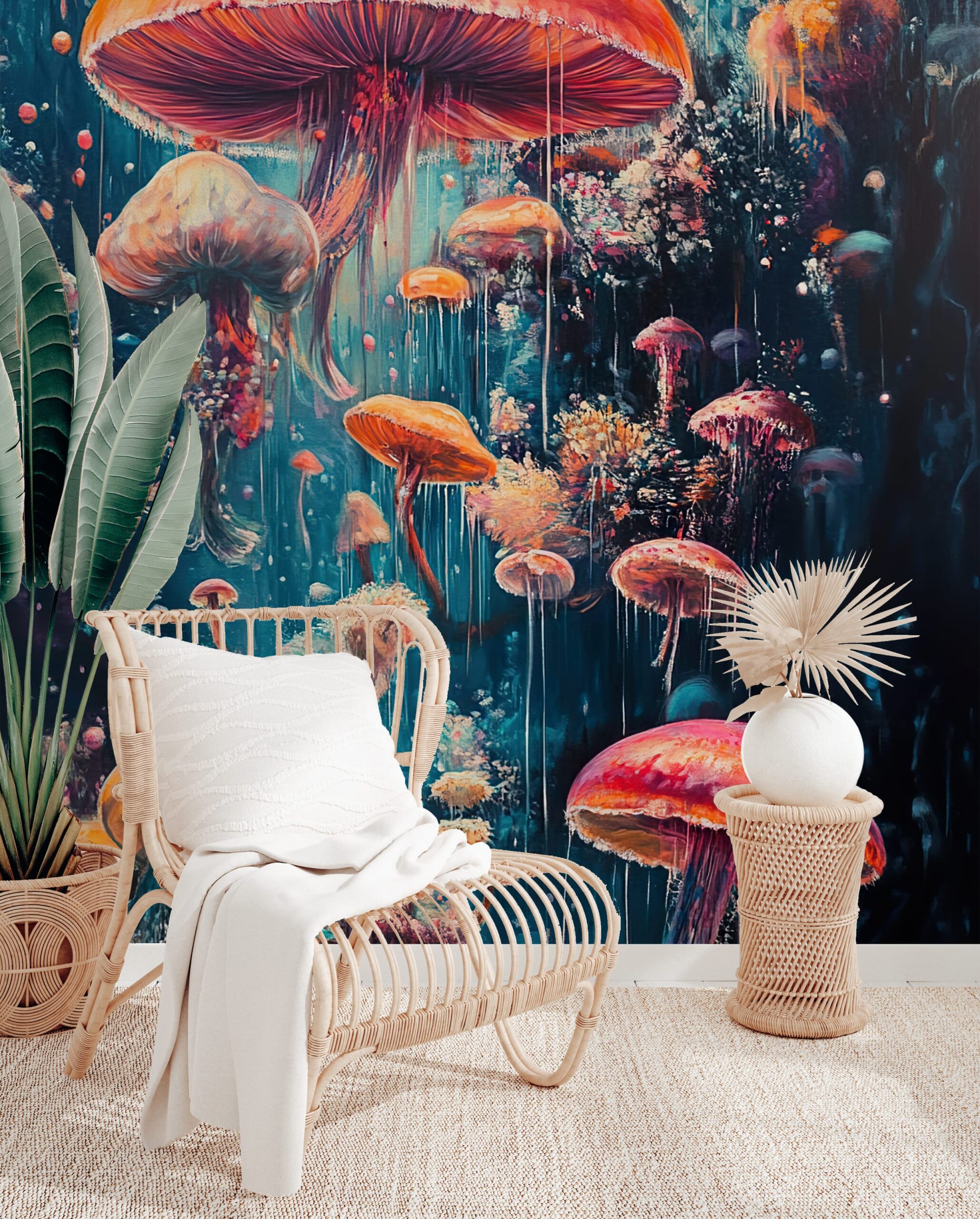 Aduceți o atmosferă unică în casa dvs. cu fototapetul „Strălucire de ciuperci”. Acest model fascinant, colorat, inspirat de lumea suprarealistă a ciupercilor, emană o lumină subtilă și o strălucire misterioasă care va transforma orice spațiu, conferindu-i un caracter unic, artistic. Culorile intense și formele dinamice completează perfect designurile interioare moderne și eclectice.