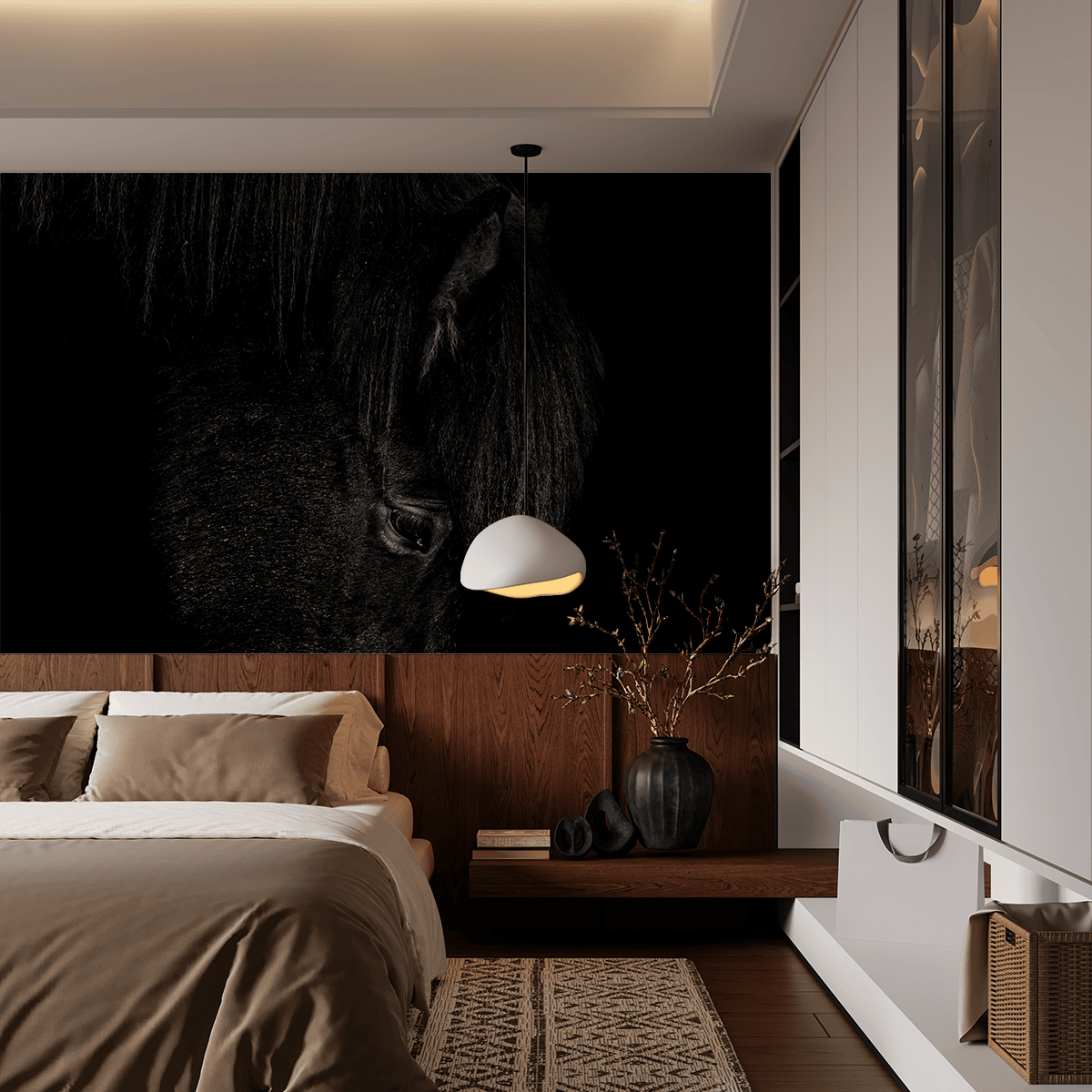 Introduceți o notă de mister și pace în interiorul dvs. cu fototapetul „Tăcerea nopții”. Acest portret alb-negru emoționant al unui cal în amurg emană putere, blândețe și o profunzime extraordinară a emoției. Forma minimalistă și jocul perfect de lumini și umbre fac ca pictura să atragă atenția, creând în același timp o atmosferă de pace și reflecție în cameră.