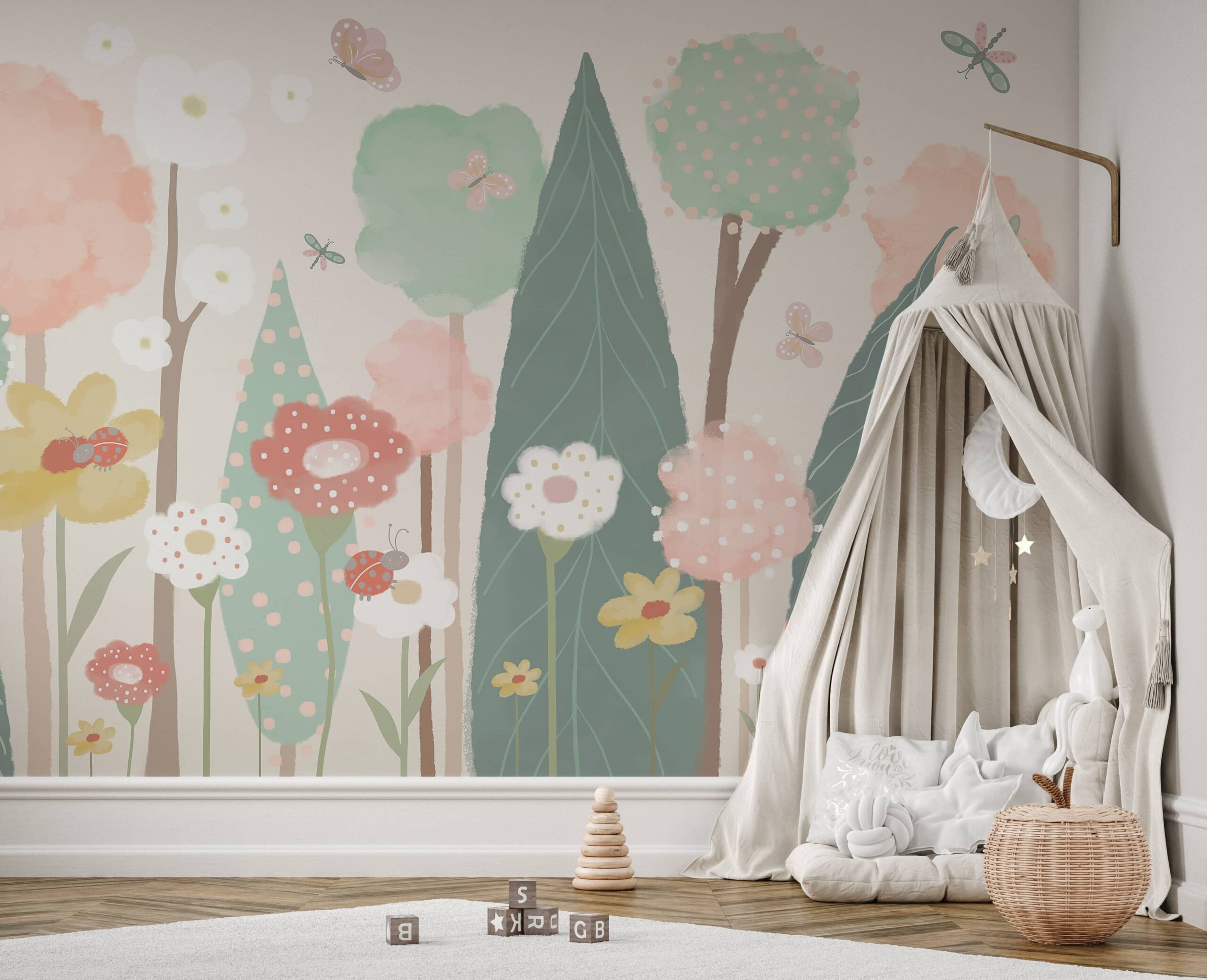 Transformă camera copilului tău într-un spațiu magic plin de zâmbete cu fototapetul „Țara Florilor”. Acest model fermecător, în culori pastelate, îi transportă pe cei mici într-o grădină de basm plină de flori colorate, fluturi veseli, buburuze adorabile și copaci fantezisti. Culorile subtile și formele prietenoase creează o atmosferă de căldură, siguranță și joacă veselă.