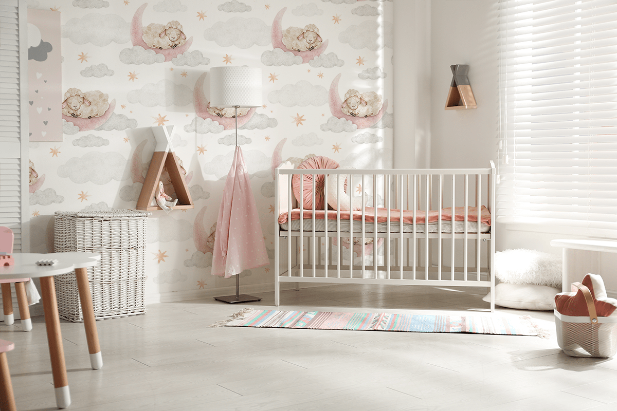 Tapetul „Sleepy Sheepland” – o lume liniștitoare a viselor, norilor moi și imaginației unui copil