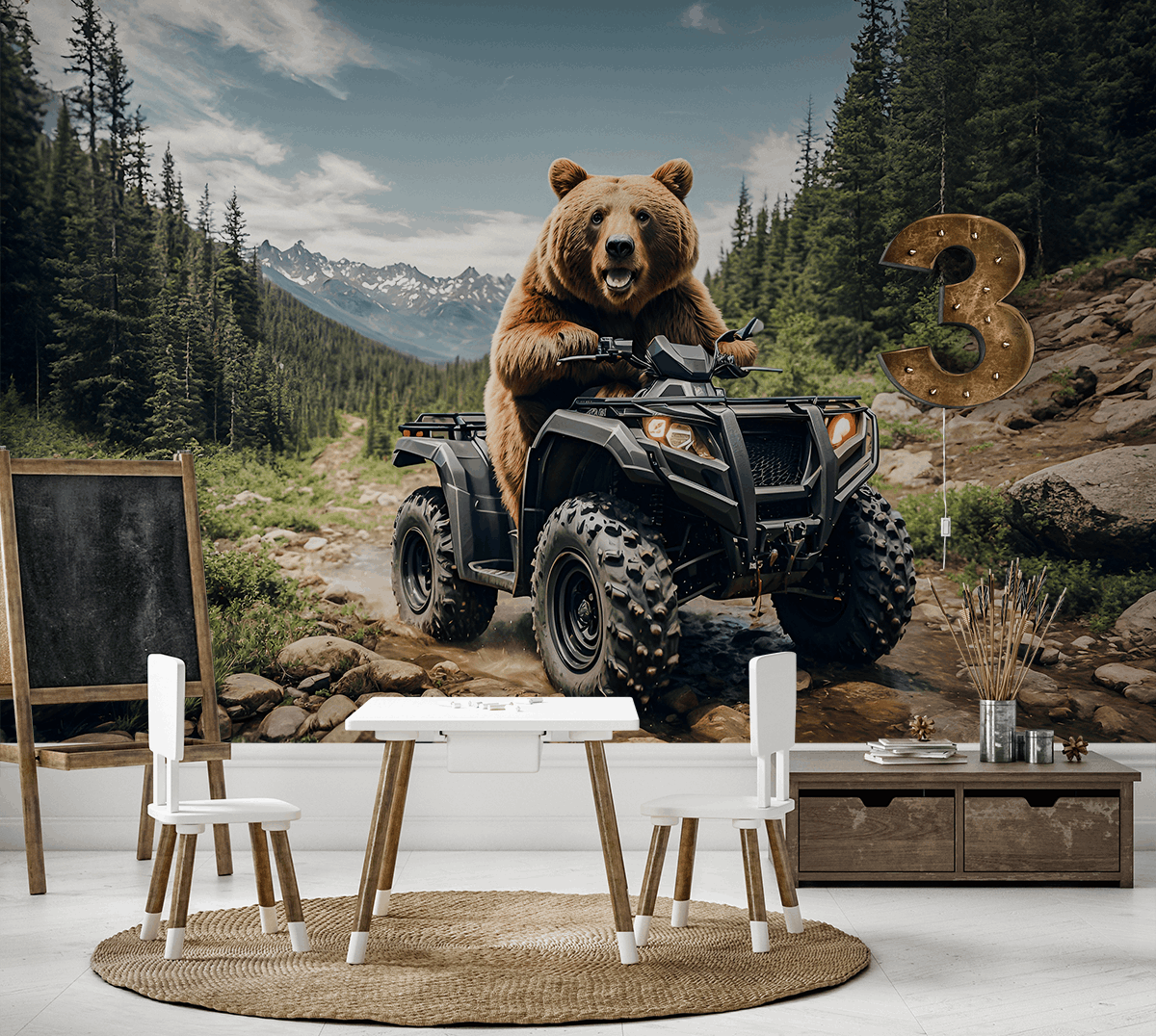 Lasă „Ursulețul de pluș Turbo” să aducă multă bucurie și distracție în camera copilului tău! Acest ursuleț vesel pe un vehicul cu patru roți este imaginea perfectă pentru micii exploratori care iubesc aventurile și activitățile în aer liber. Grafica colorată și energică va stârni imaginația și va face fiecare zi specială.